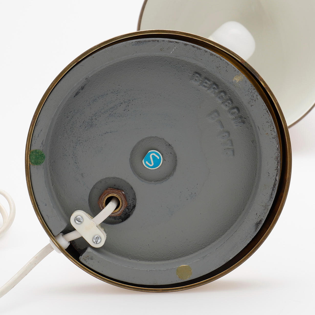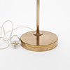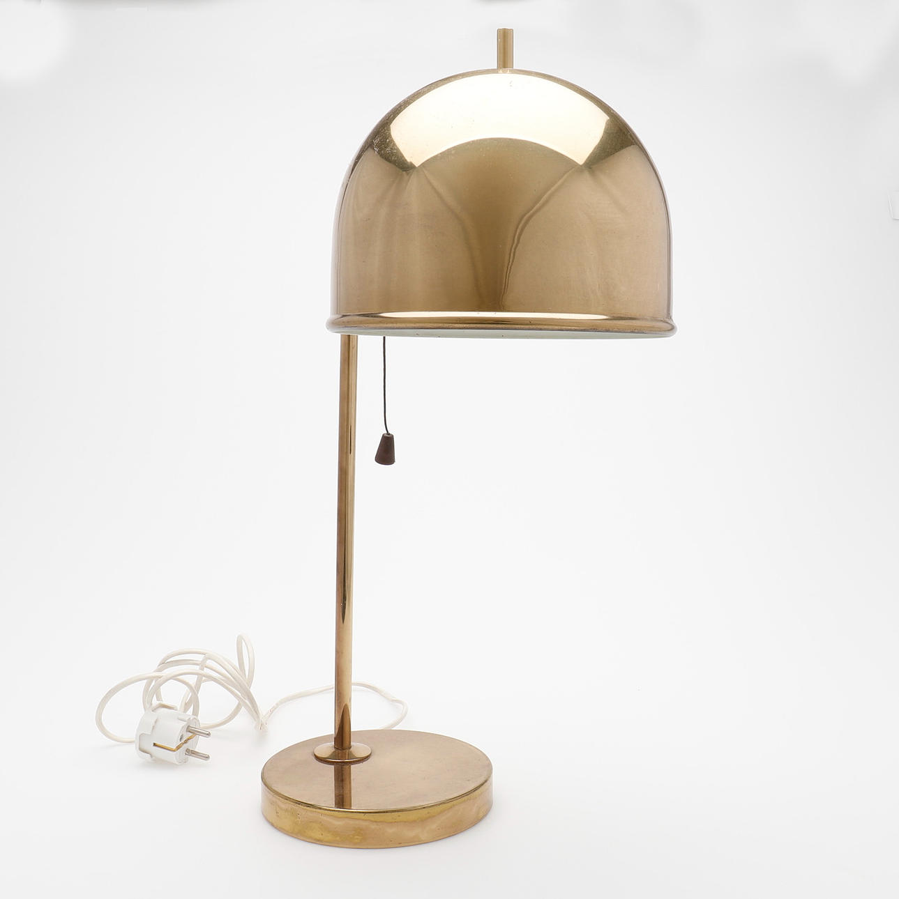Mässing, rund ställbar skärm, samt rund sockel. Höjd ca 52 cm.