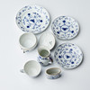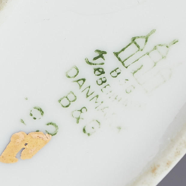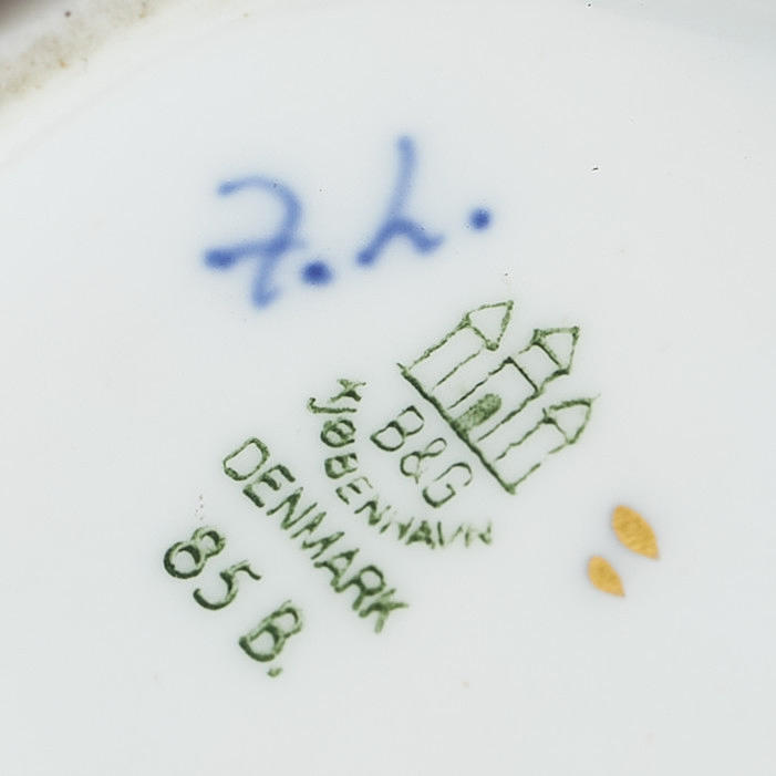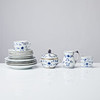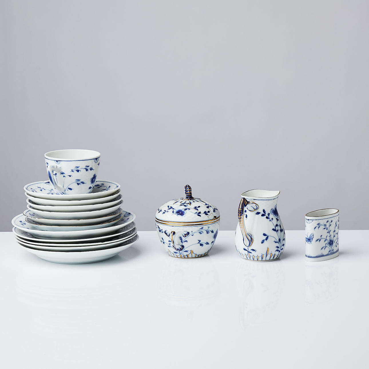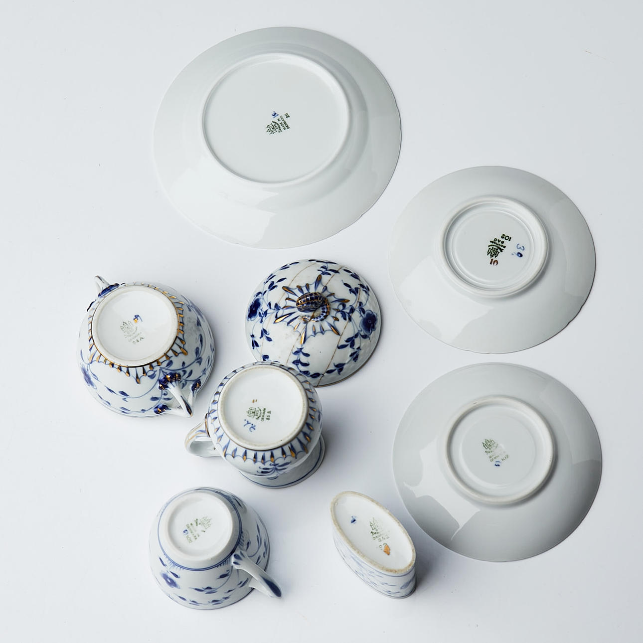 Med gulddekor: 2 koppar med fat (+2 extra fat) 1 sockerskål 1 gräddkanna 1 näsdukshållare.