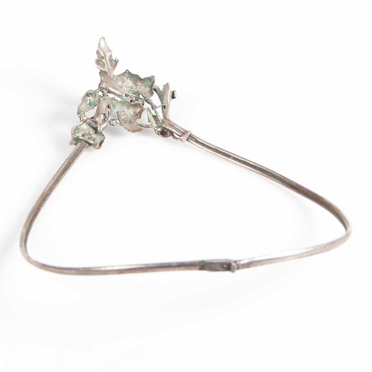 Stelt collier med dekor av blommor och blad. Vikt 28 g Ca 13 x 17 cm Stämplad 925 och 97.