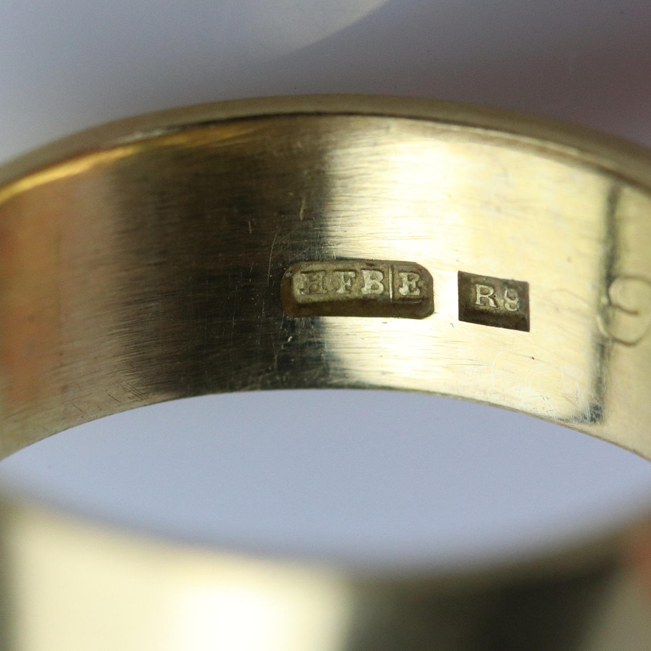 Fint bruksskick. Ringen har förminskats och saknar därför ett par stämplar.