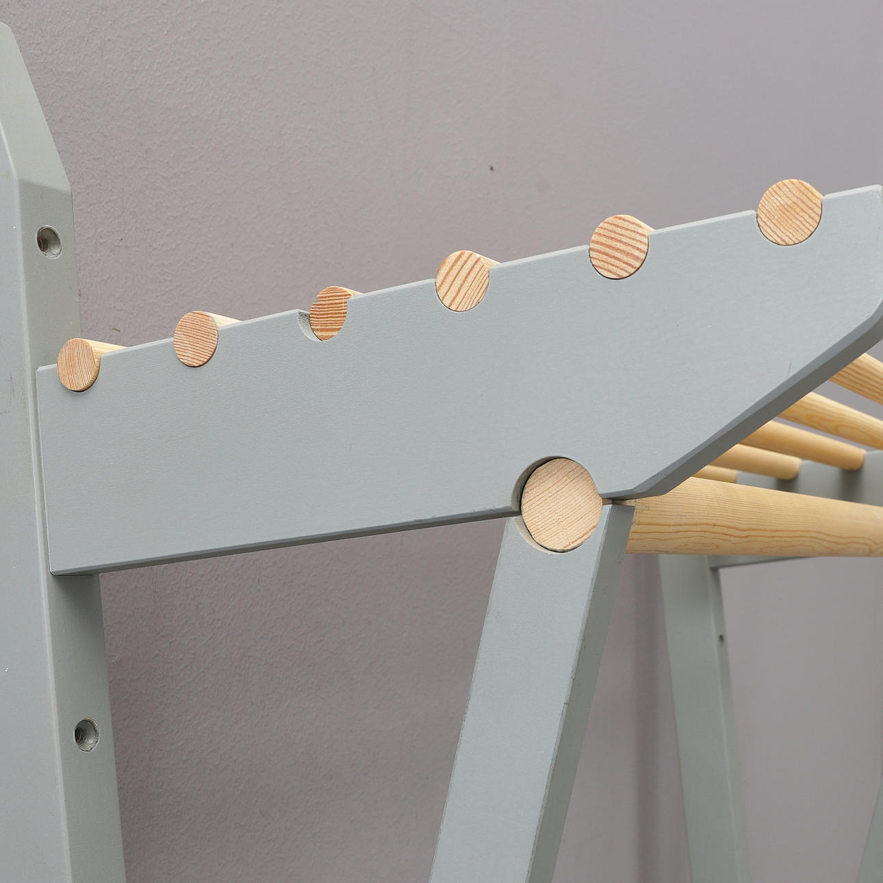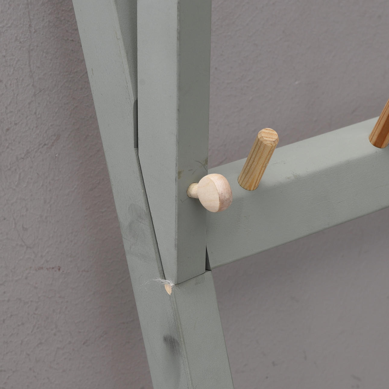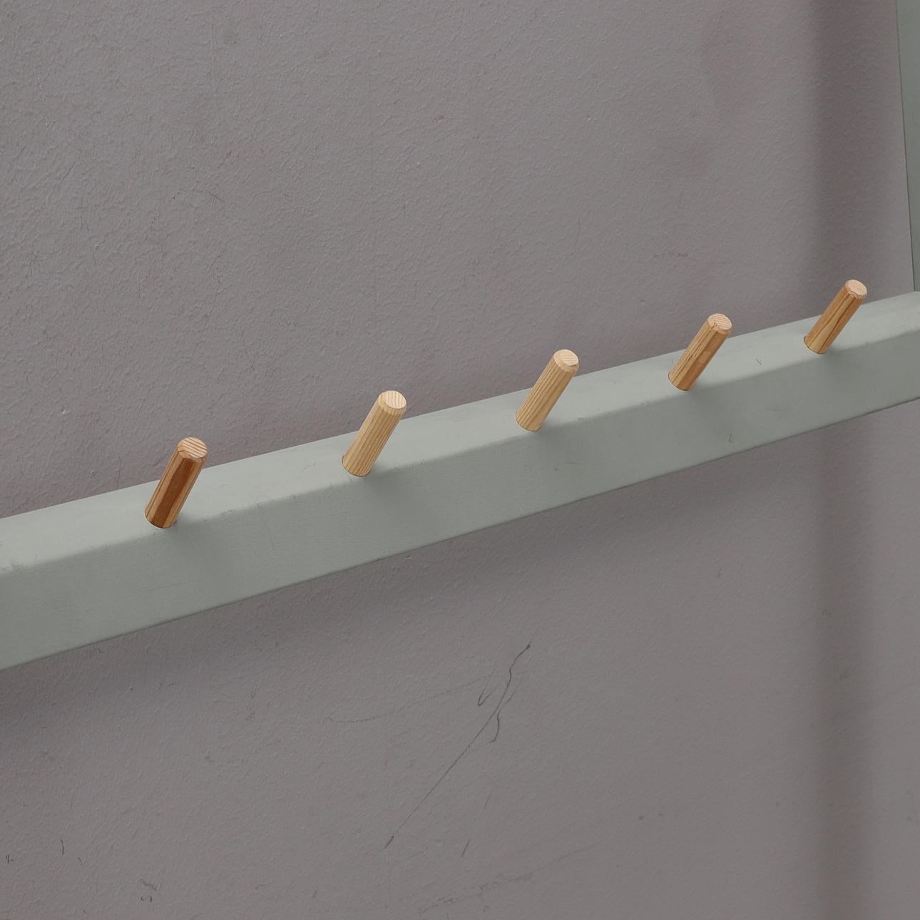 Rundstavar och krokar i oljad furu.
