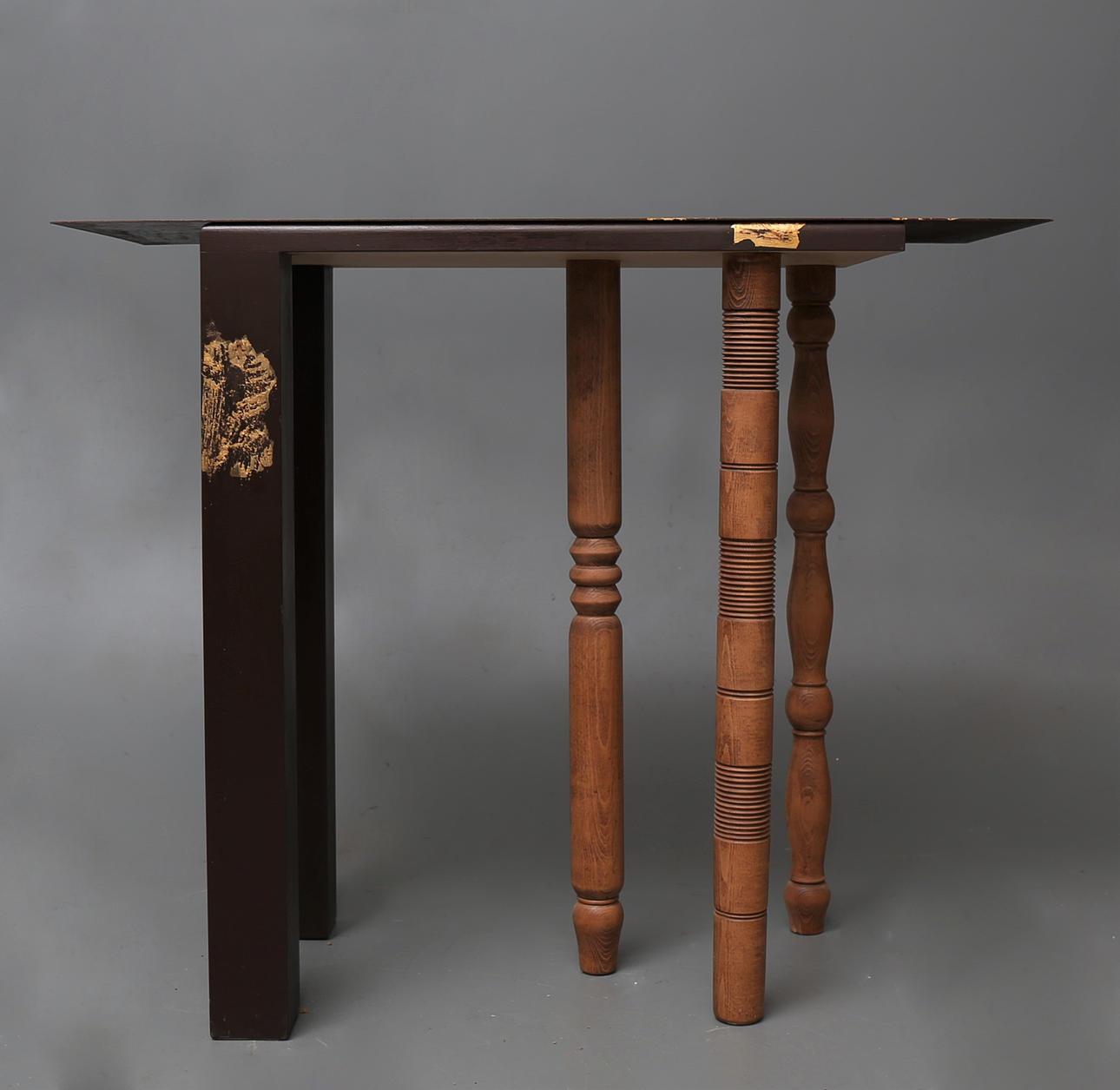 Vred trä och cortenjärn med guldbladsinneslutningar