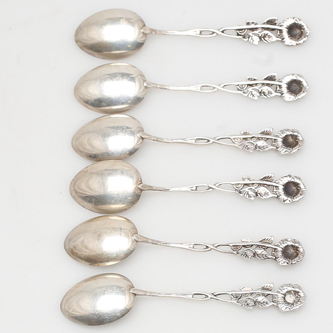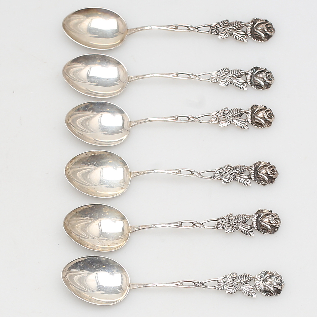 216996. TESKEDAR. 6 st. Silver. Dekor av rosor.