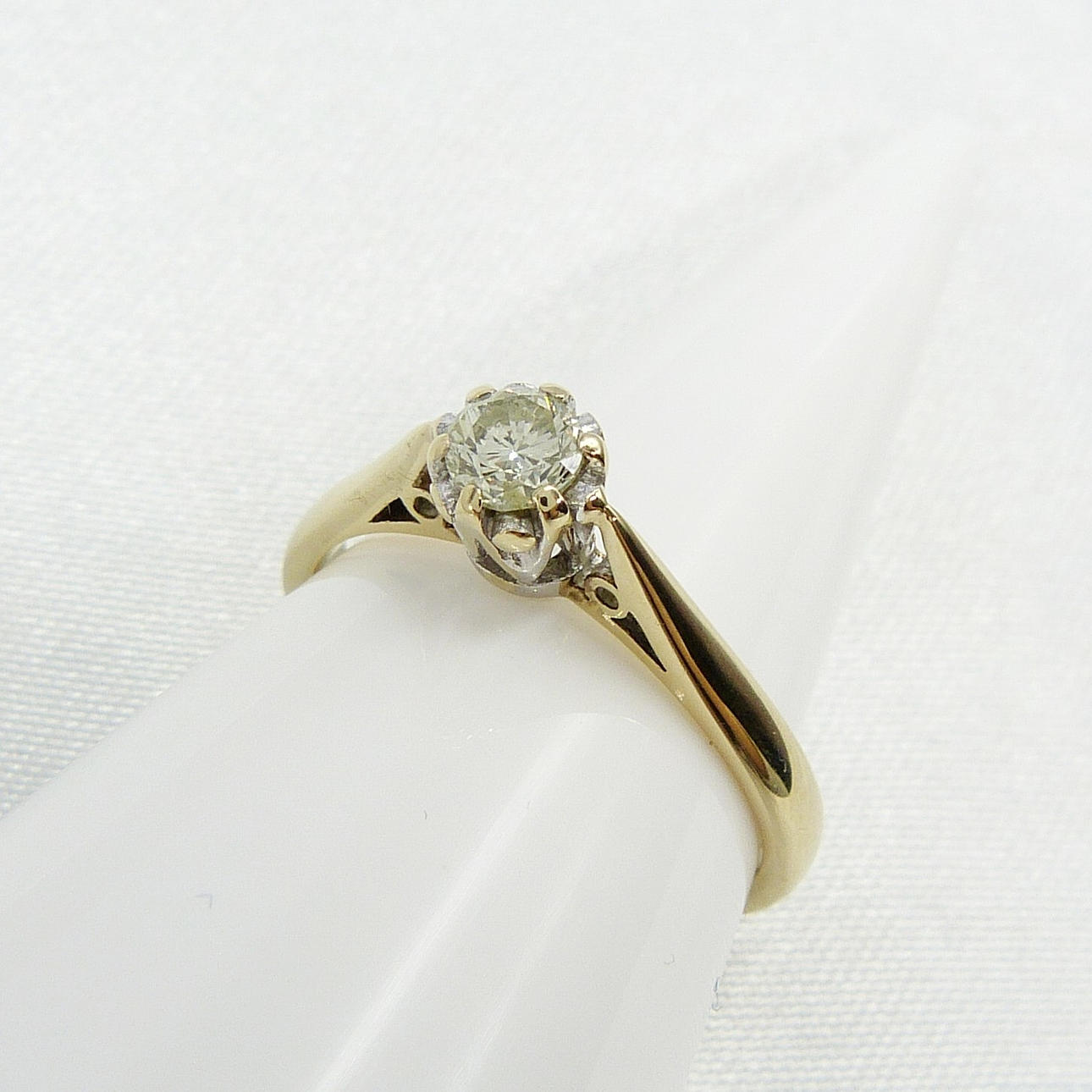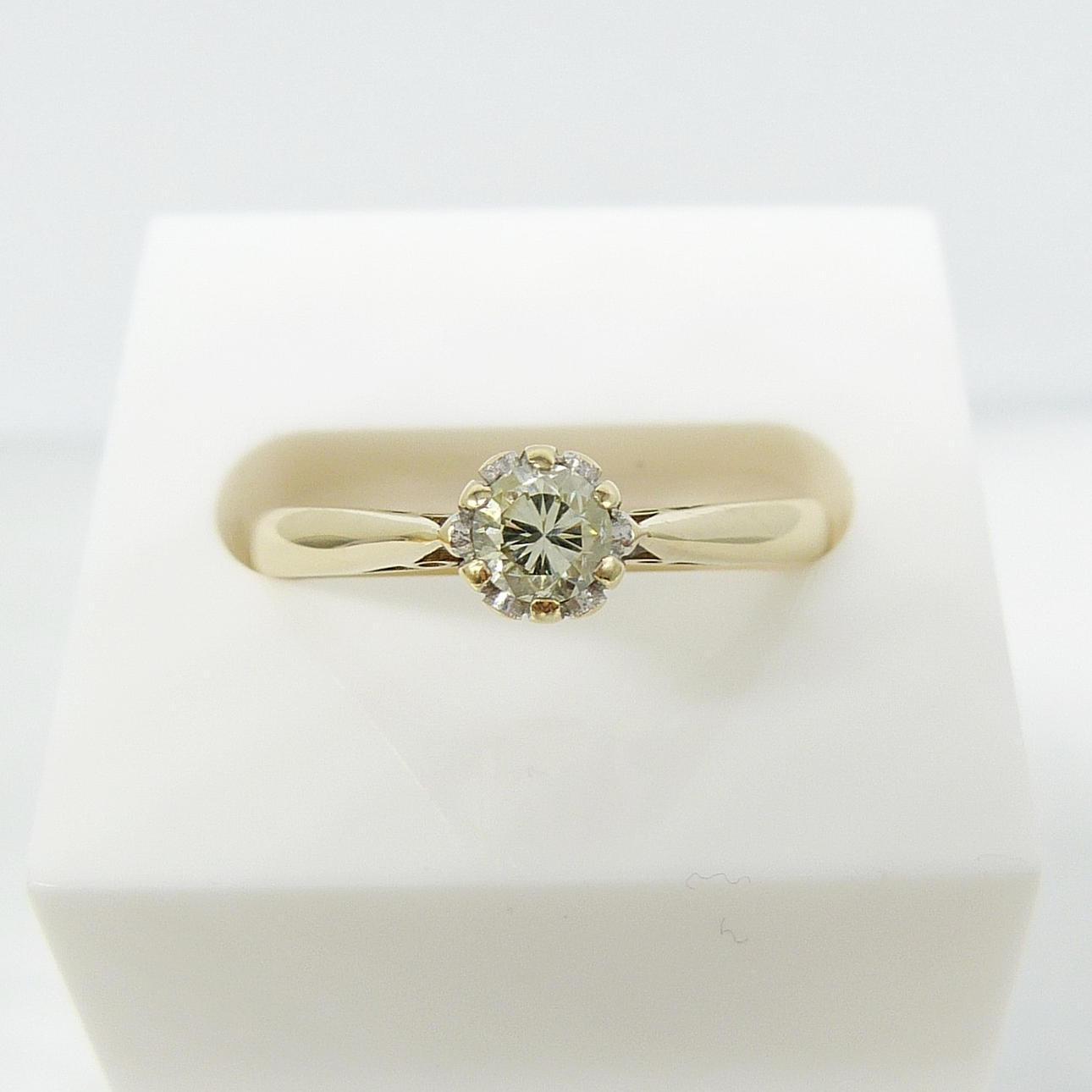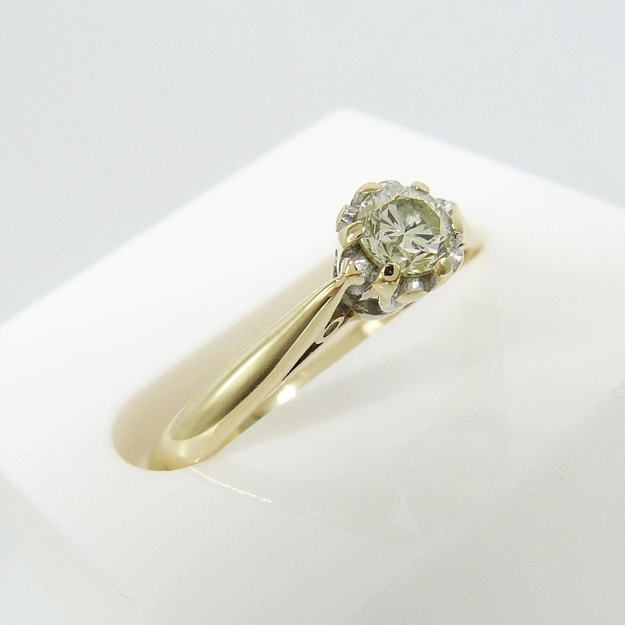 Ring i vintagestil gult guld diamant med en 0,25 karat rund briljantslipad diamant med god klarhet, boxed.
