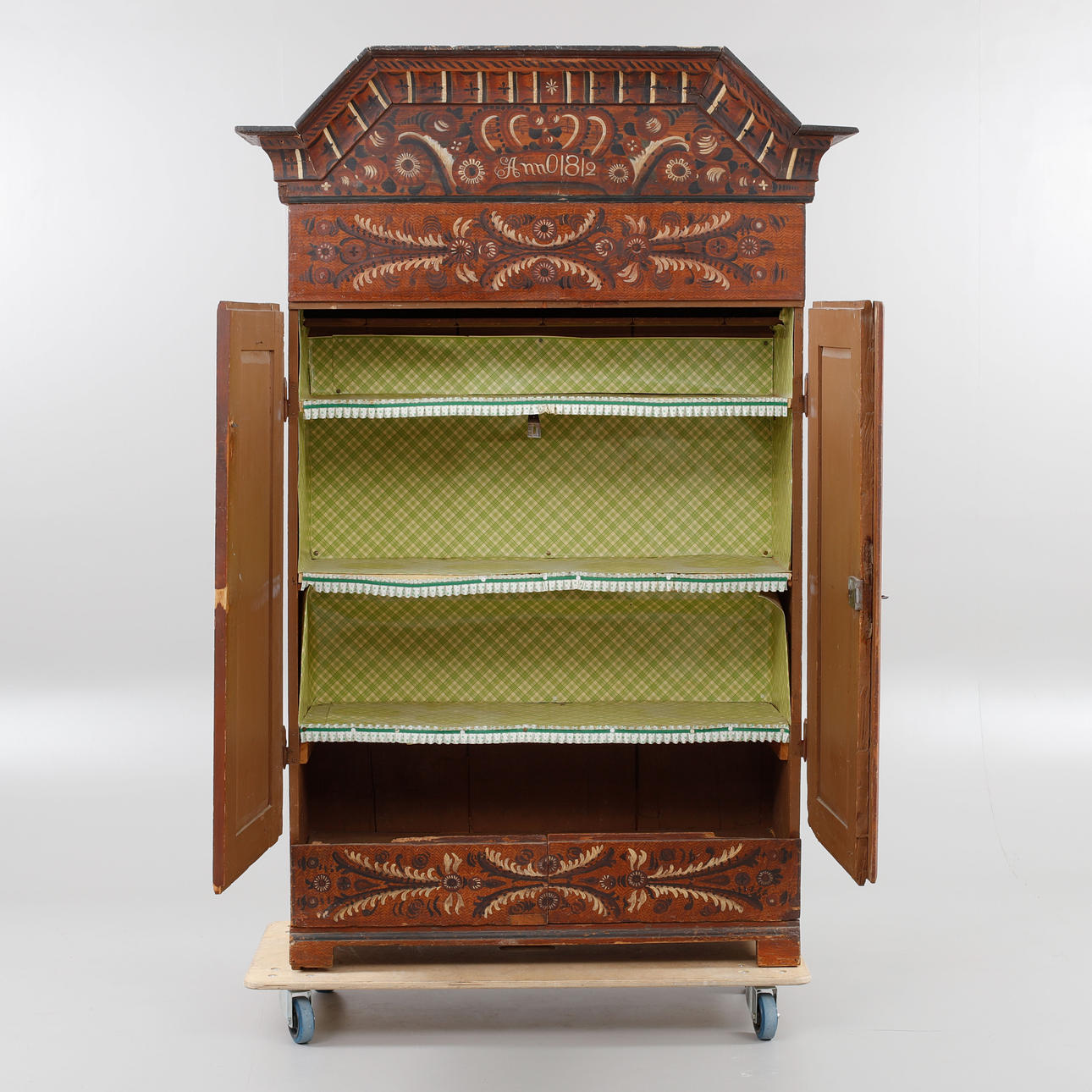 Dekormålat. Brutet krön. Längd ca128, djup ca 41, höjd ca 195 cm.