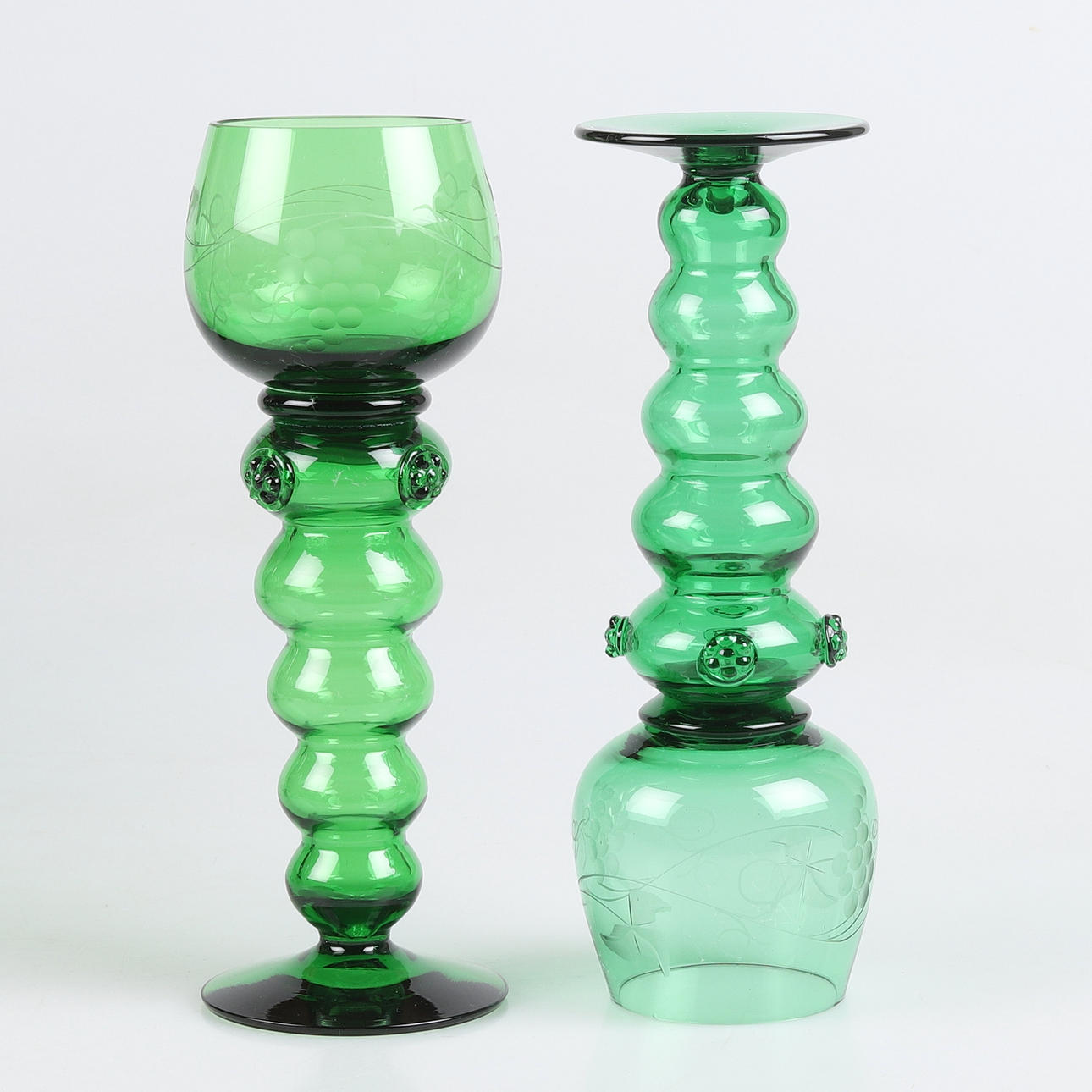 Kupor med slipad dekor av vinrankor. Höjd ca 21 cm.