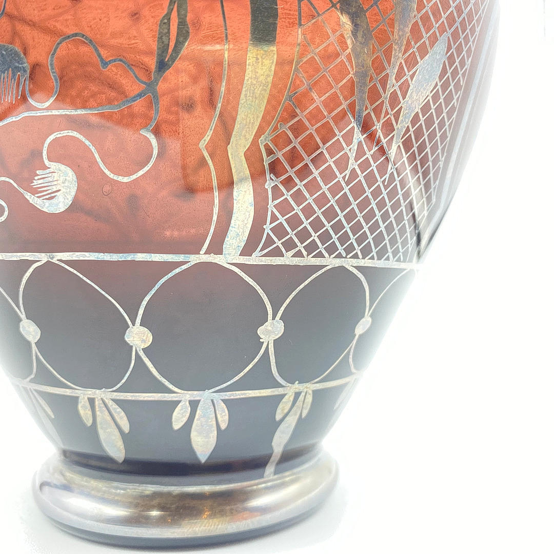 ITALIENSK GLASVAS SILVER OVERLAY.