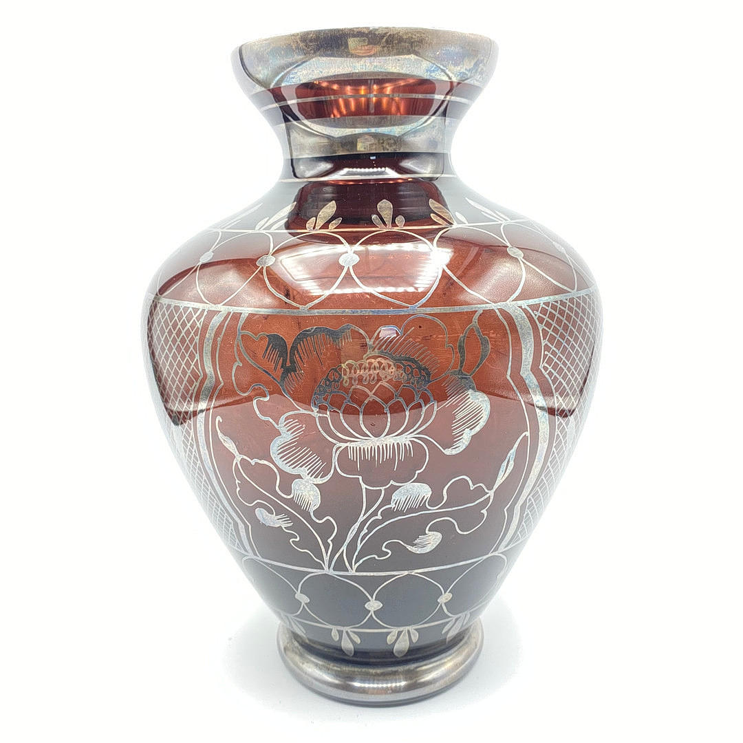 2175130. ITALIENSK GLASVAS SILVER OVERLAY.