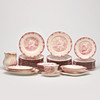 12 mattallrikar. 12 förrättstallrikar, 12 djupa tallrikar, 12 assietter, 1 såsskål, 4 ovala fat, 3 oval skålar, 1 bringare. 1 fat i snarlikt mönster medföljer.