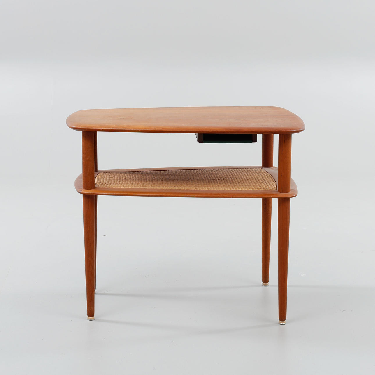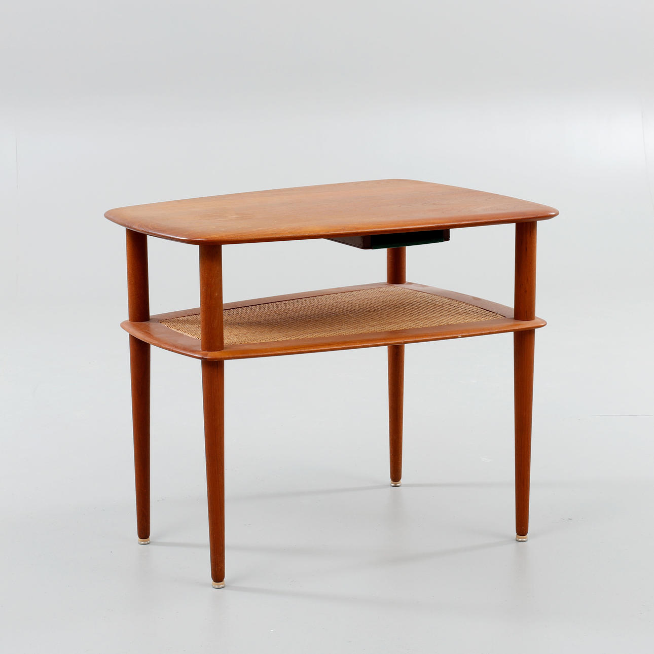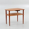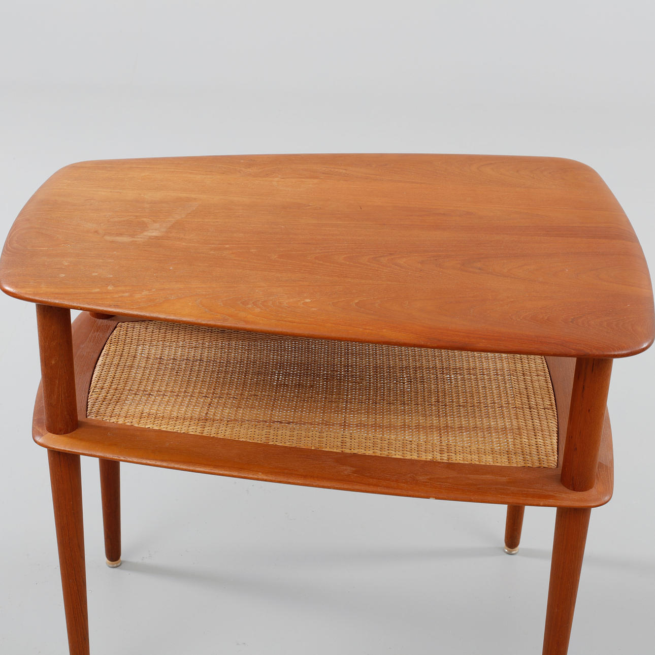 teak med tidningshylla i rotting, ca 71 x 52 cm, höjd 59 cm.