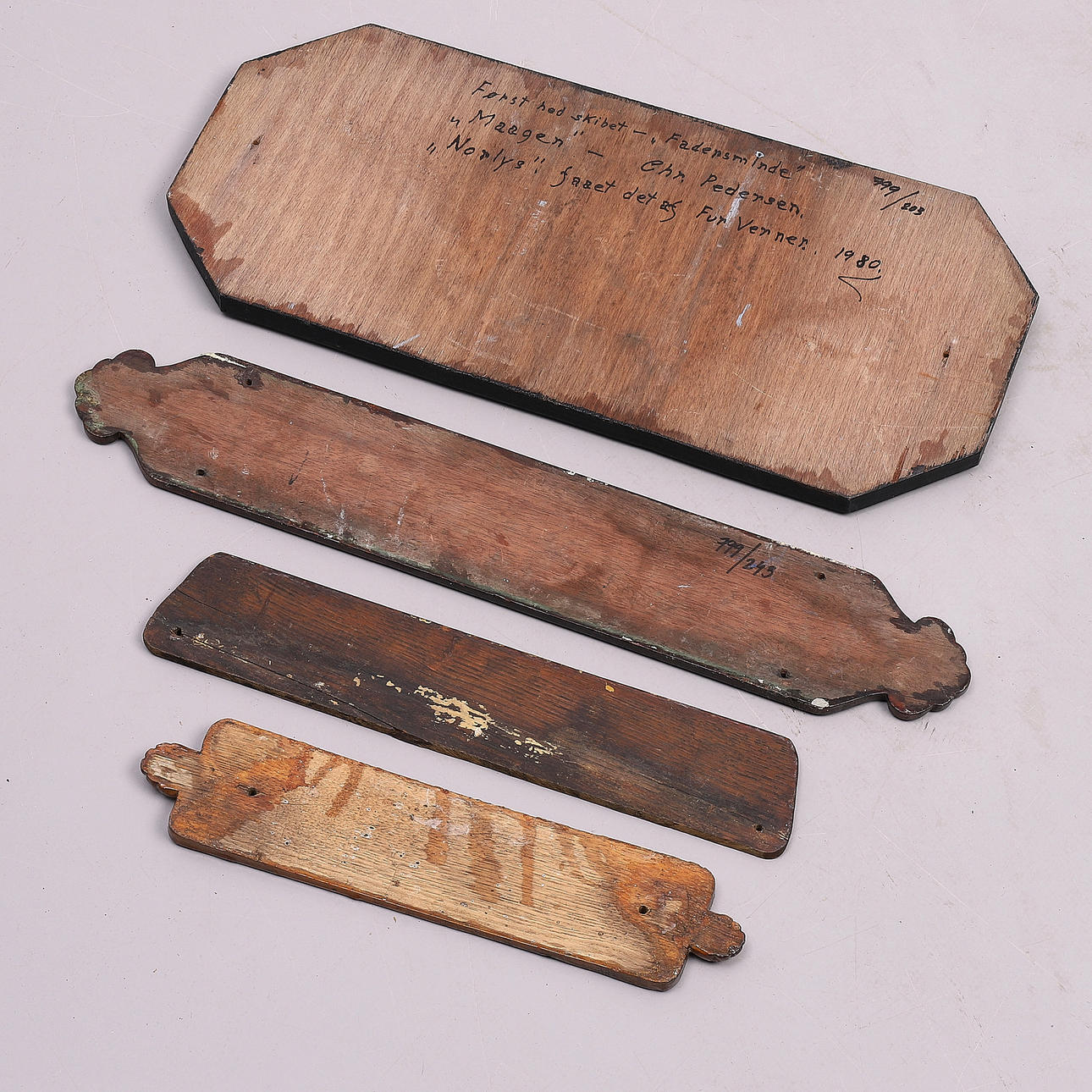 2179485. NAMNSKYLTAR, 4 st, från båtar.