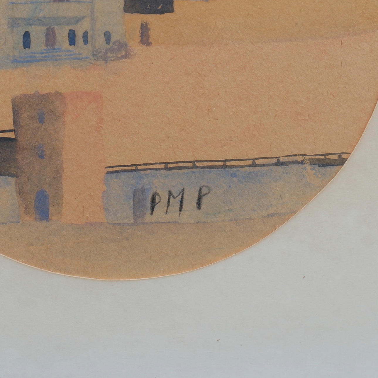 Sydländsk byggnad. Diamater 25 cm.