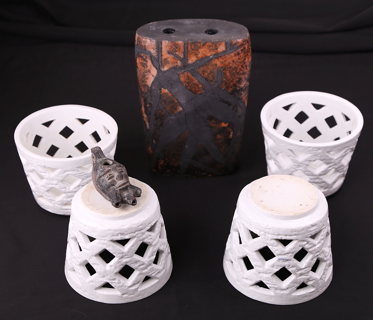 218208. KERAMIKFÖREMÅL, 6 delar.