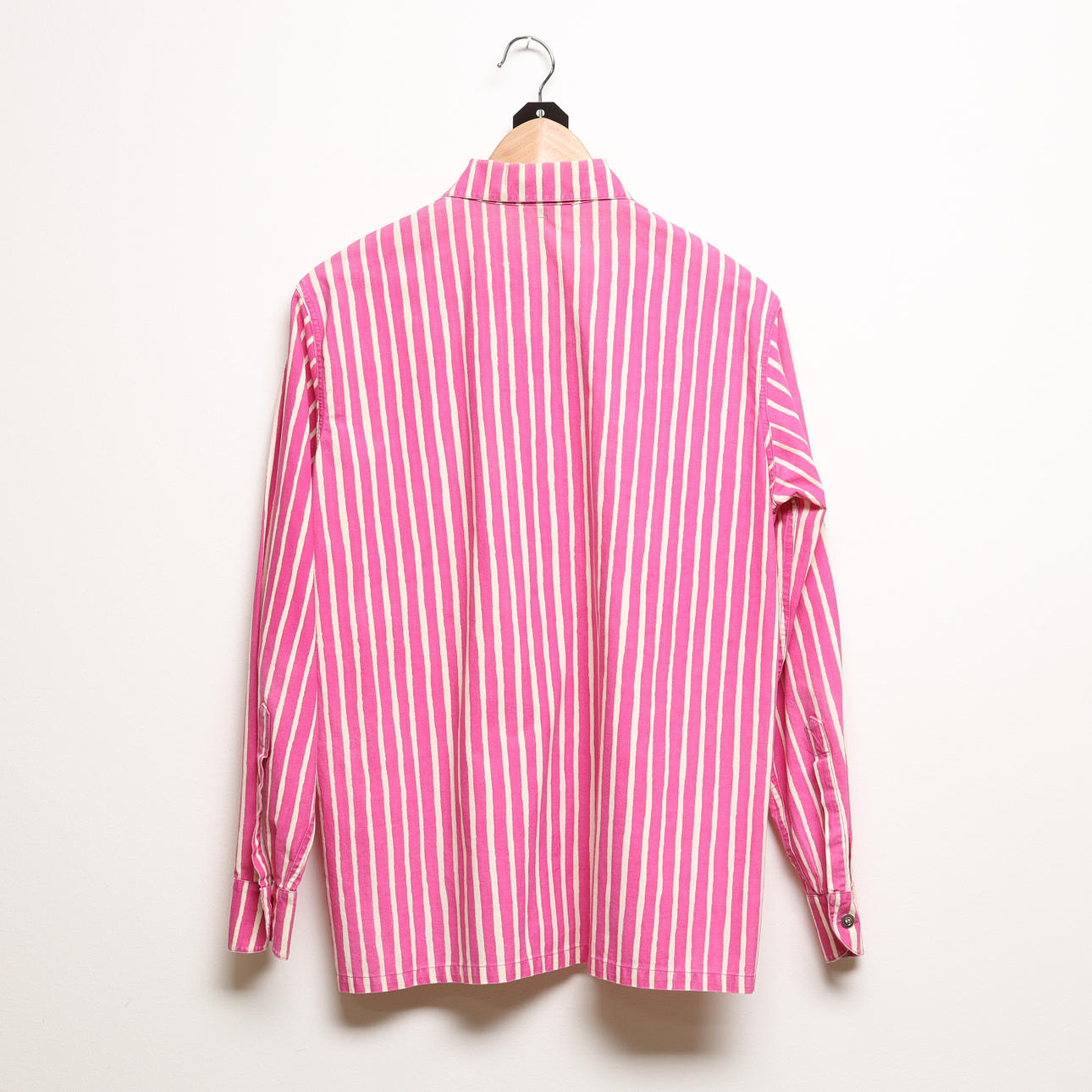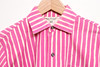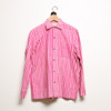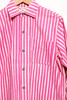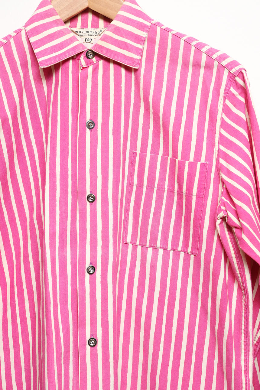 Unisex skjortan Jokapoika, i rosa- och vitrandig färgställning av bomullstyget Piccolo, designat 1953 av Vuokko Eskolin-Nurmesniemi. Bystvidd ca 100 cm. Rygglängd ca 68 cm.