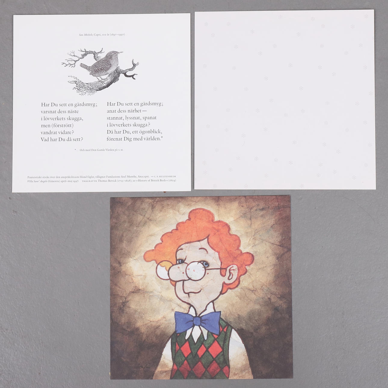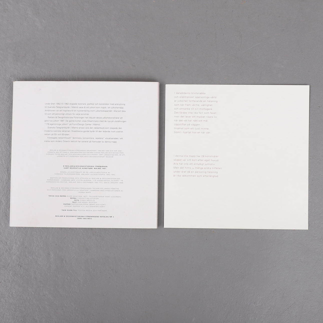 Mapp med julkort av 28 formgivare, samt med omslag av Anders Österlin. Producerad för utställningen 178 egensinniga julkort, på Form/Design Center, Malmö 1997-1998