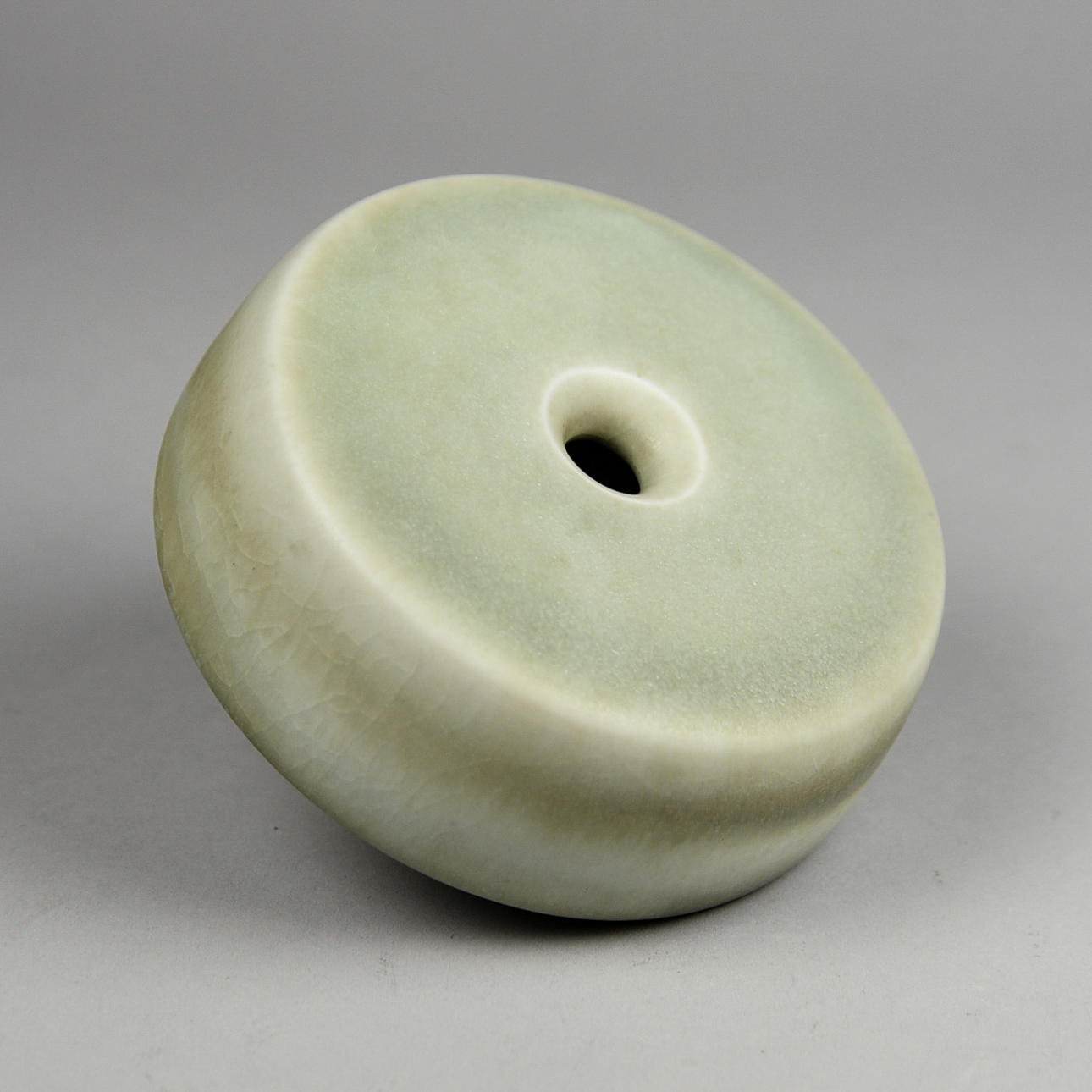 Glaserat porslin H. 6,5 cm, D. 11 cm. Signerad och daterad 76.