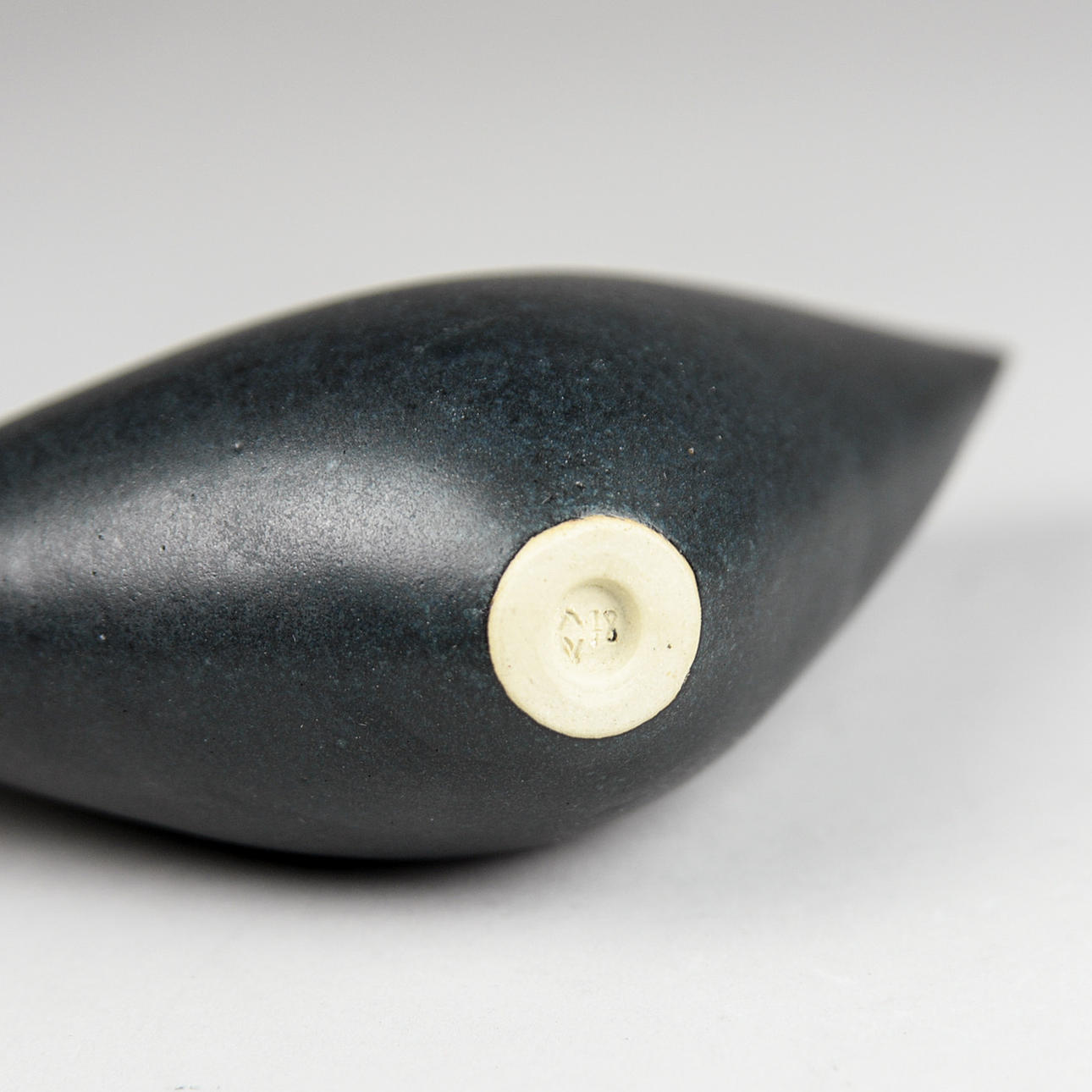 Glaserat stengods. H. 11centimeter, B. 18 cm. Signerad och daterad 81.