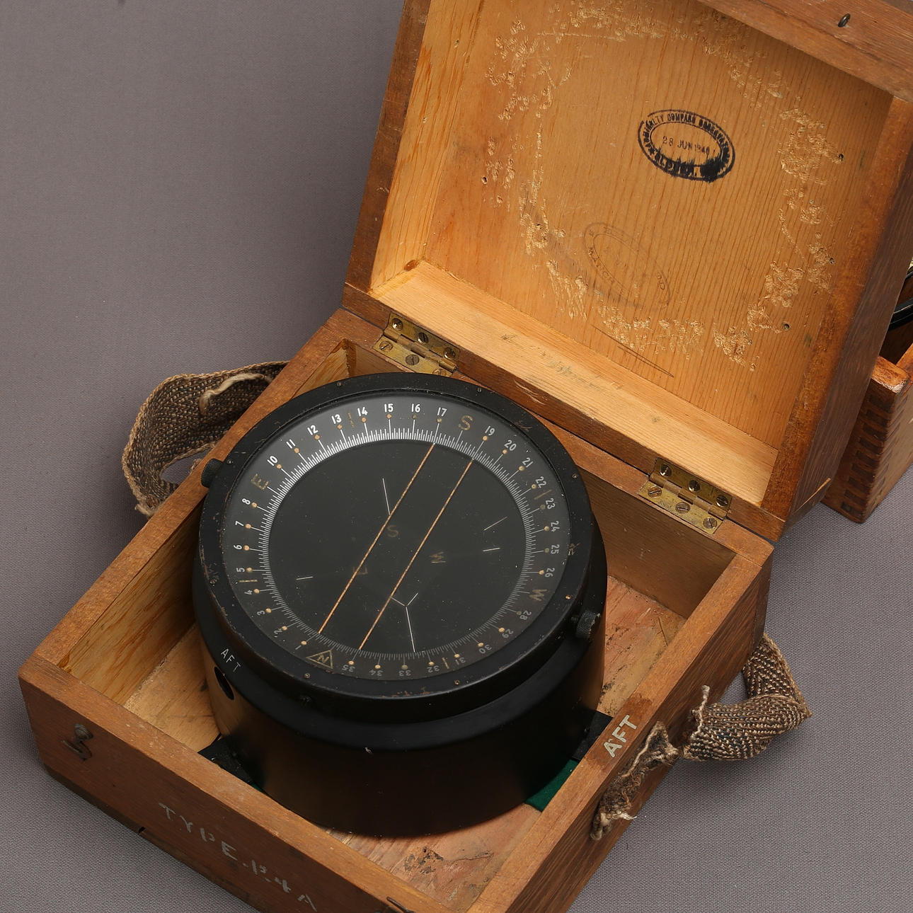 Kompass, Pioneer, Type no 1801-2-A, serie nr H-254, diameter 17,5 cm. Med äldre låda.