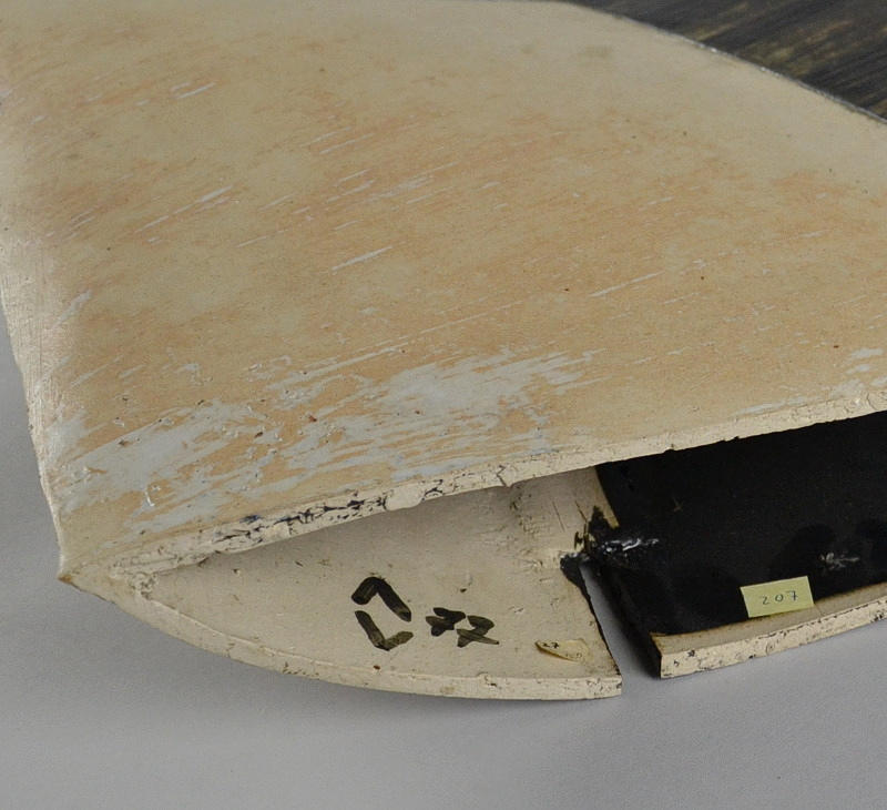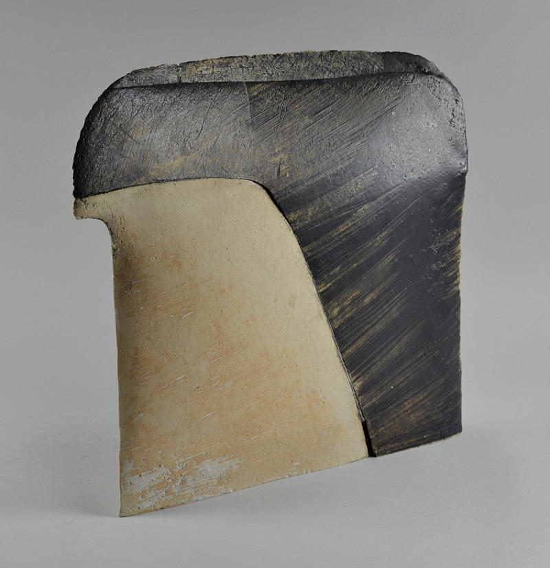 stengods. H. 42cm, B. 43cm, D. 7cm. Signerad och daterad 77.