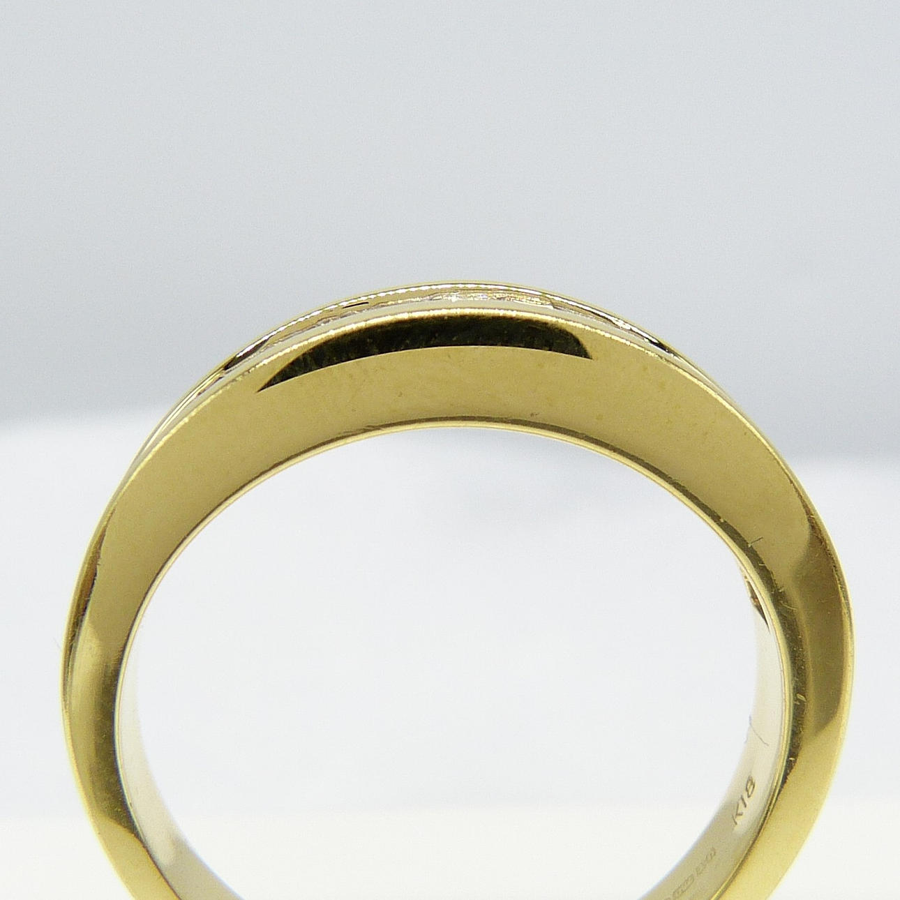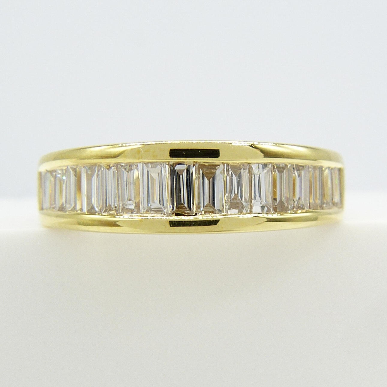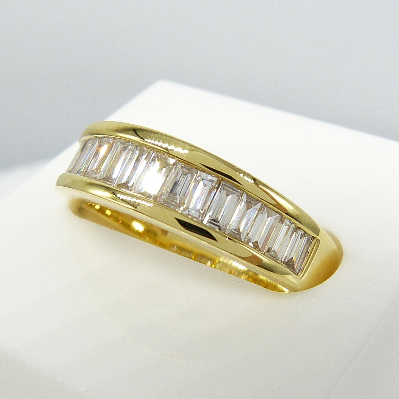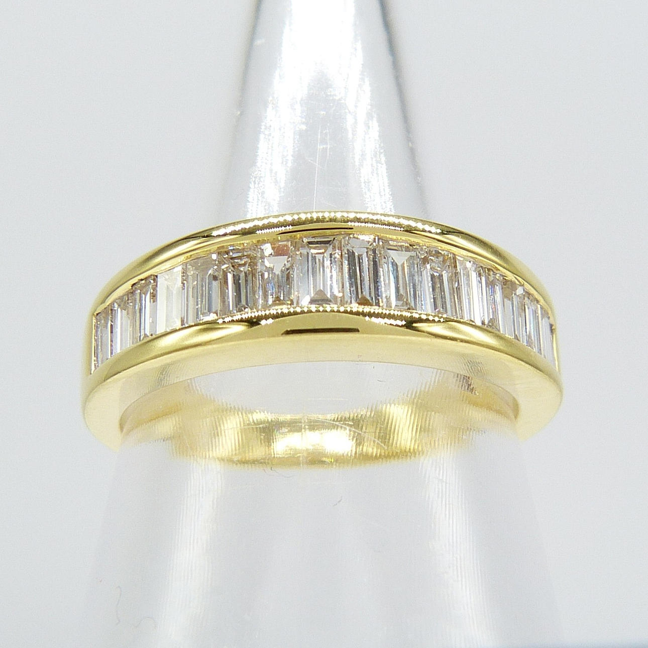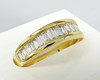 18k gult guld ring är kanal-set med ca 0,75 ct avsmalnande baguette naturliga diamanter.