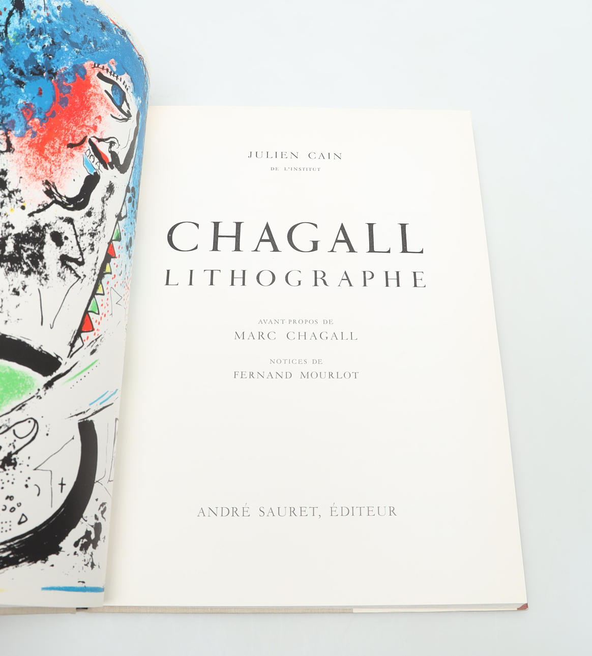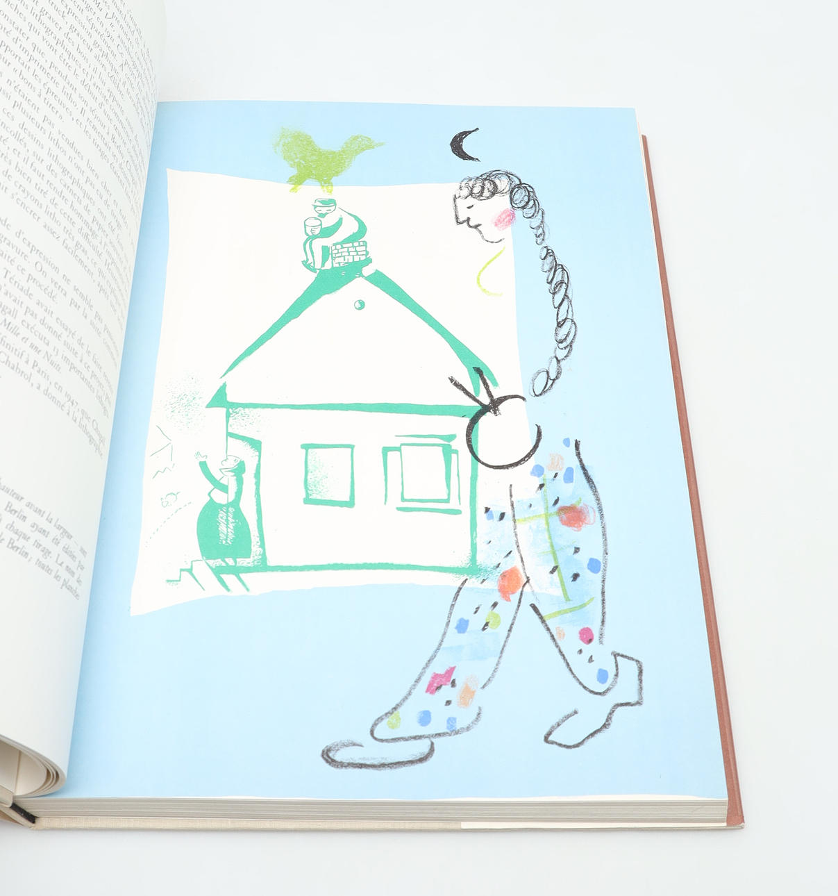 Fransk edition. Fernand Mourlot. Éditeur André Sauret, 1960. 12 originallitografier av Marc Chagall, varav 10 i färg inkl omslaget och en frontespis. Transparent skyddsomslag. Första delen av 6.