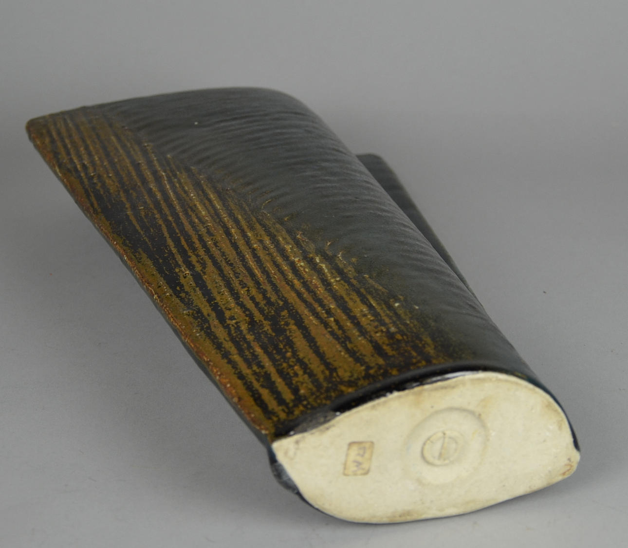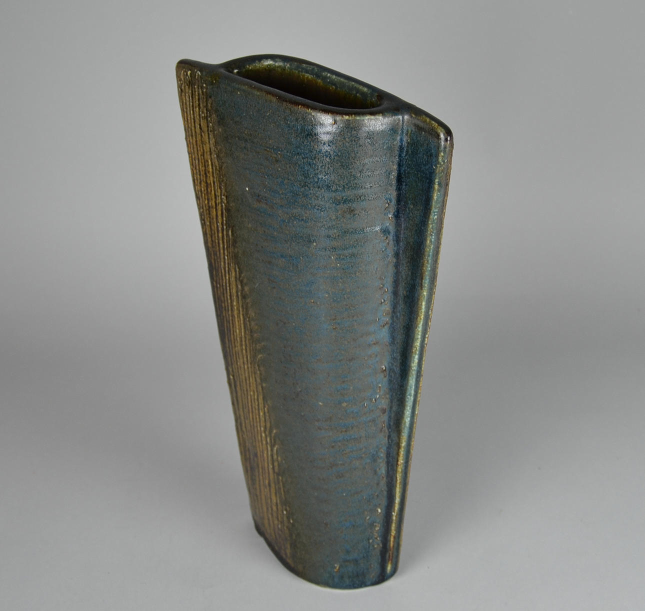 Glaserat stengods. H. 34cm, B. 19,5 cm, d. 5 cm. Signerad.