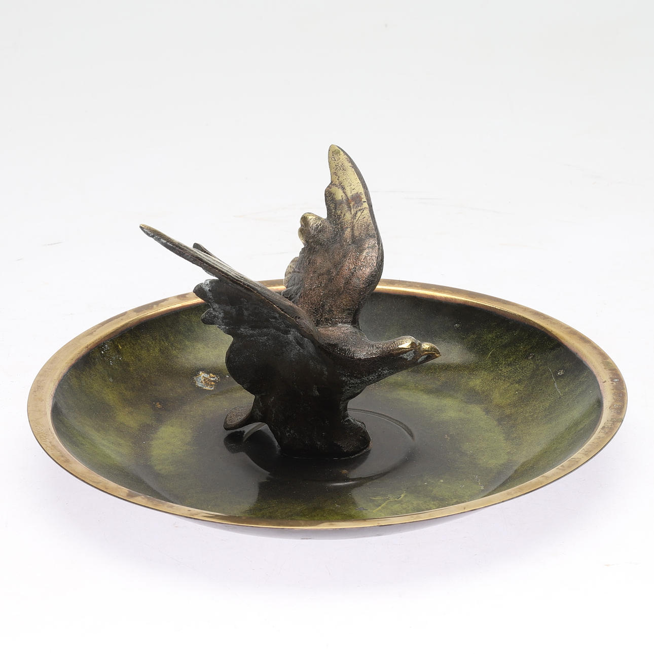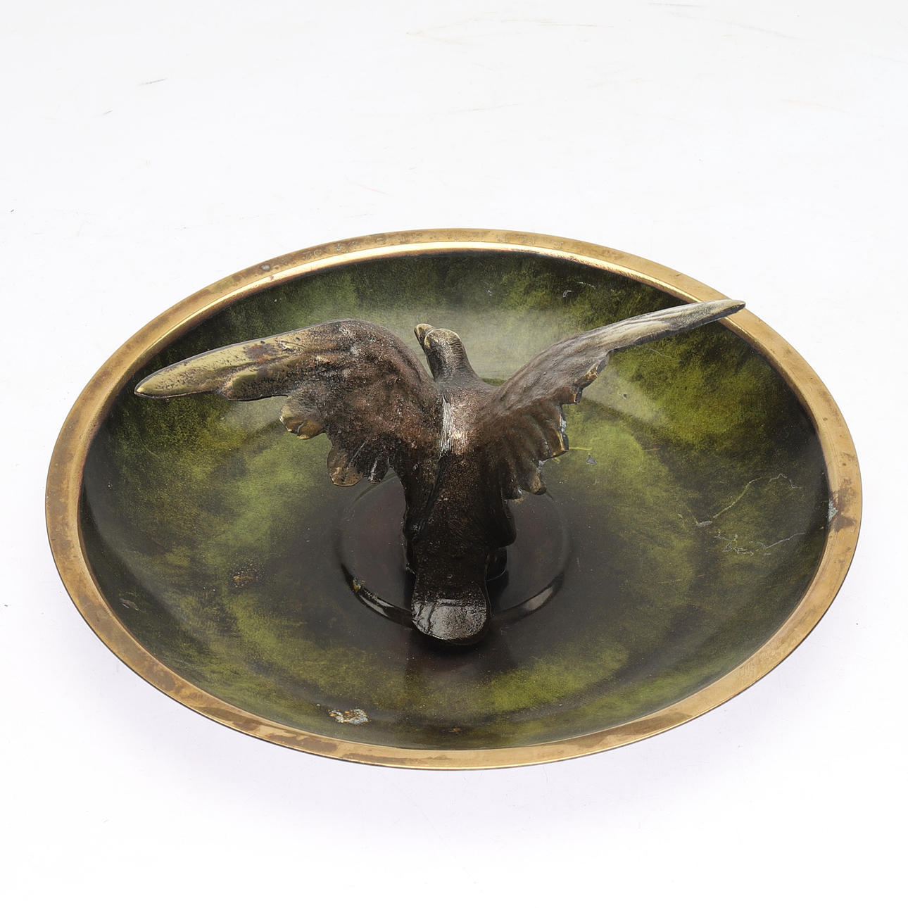 Med dekor i form av örn. Diameter ca 21, höjd 8 cm.