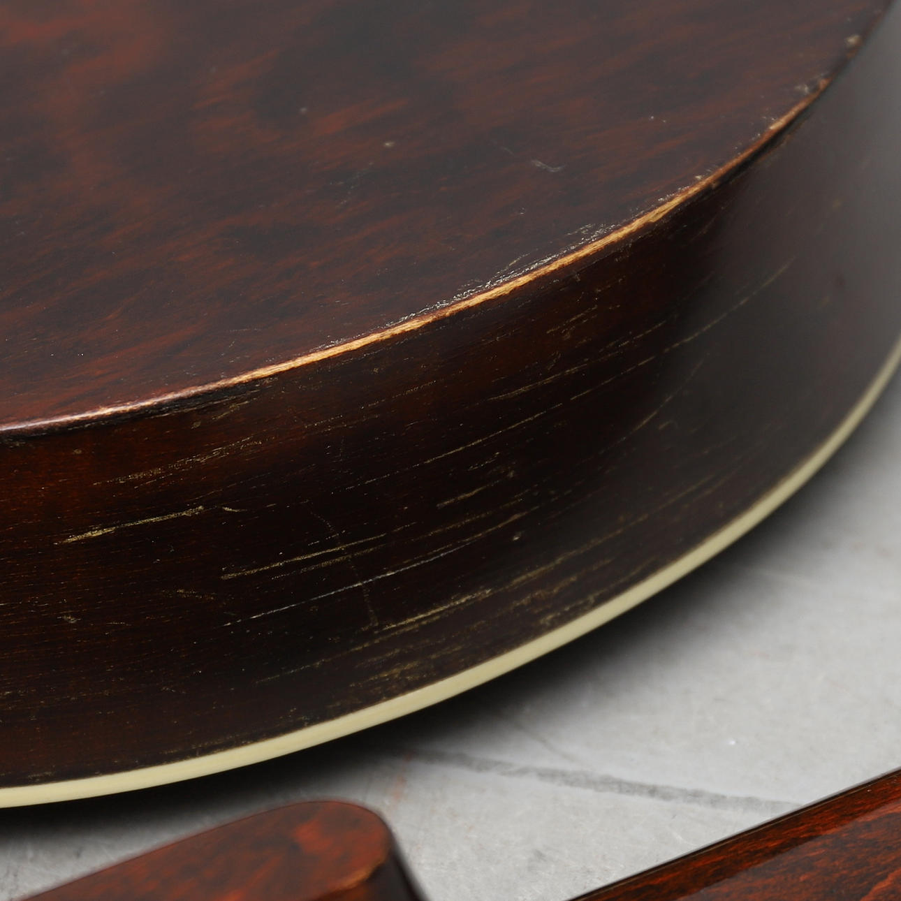 Bruksslitage. Repor och märken. Mandolin med torrsprickor. Sträng saknas. Väskor med skador.