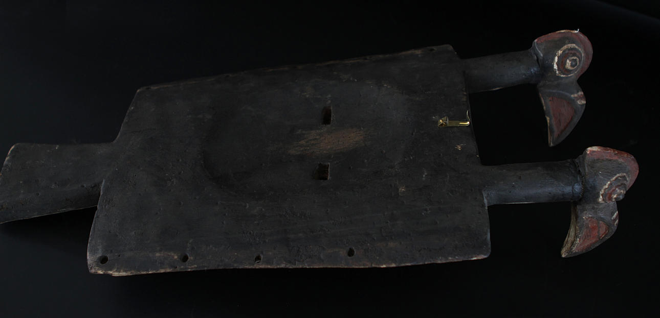 S k Walumask. Bemålat trä i vit, grön samt röd färg. Höjd 42 cm.