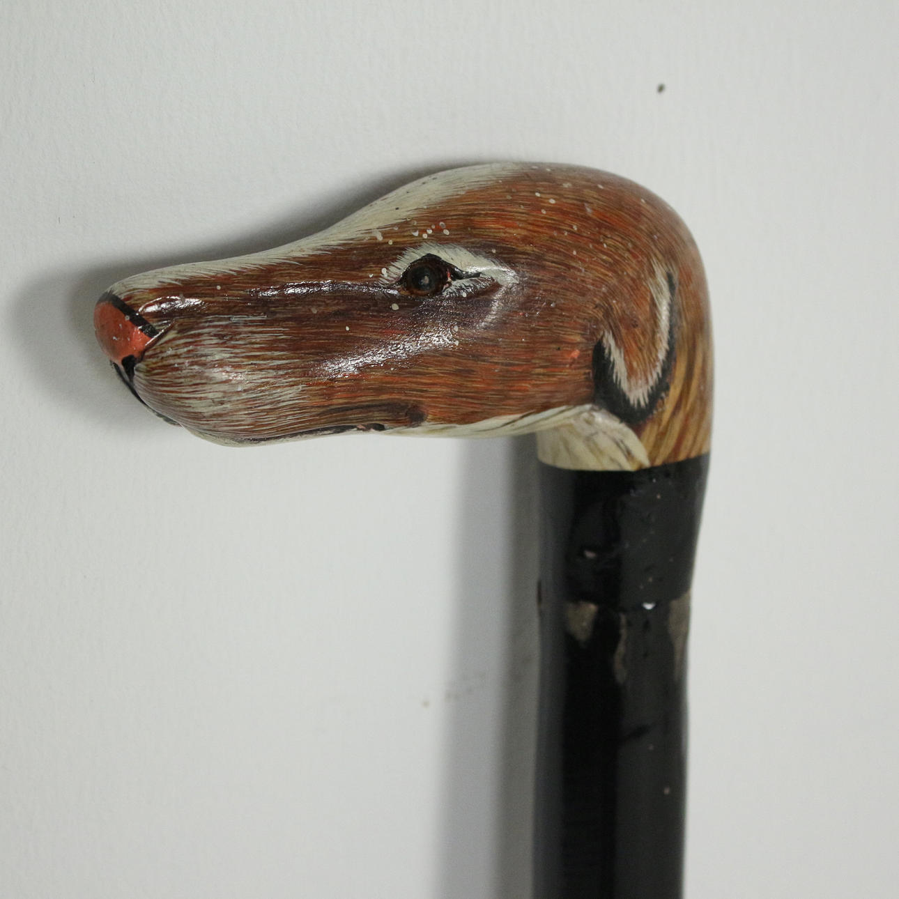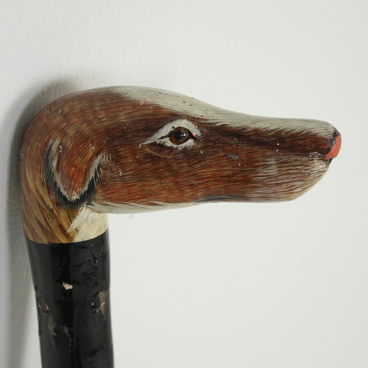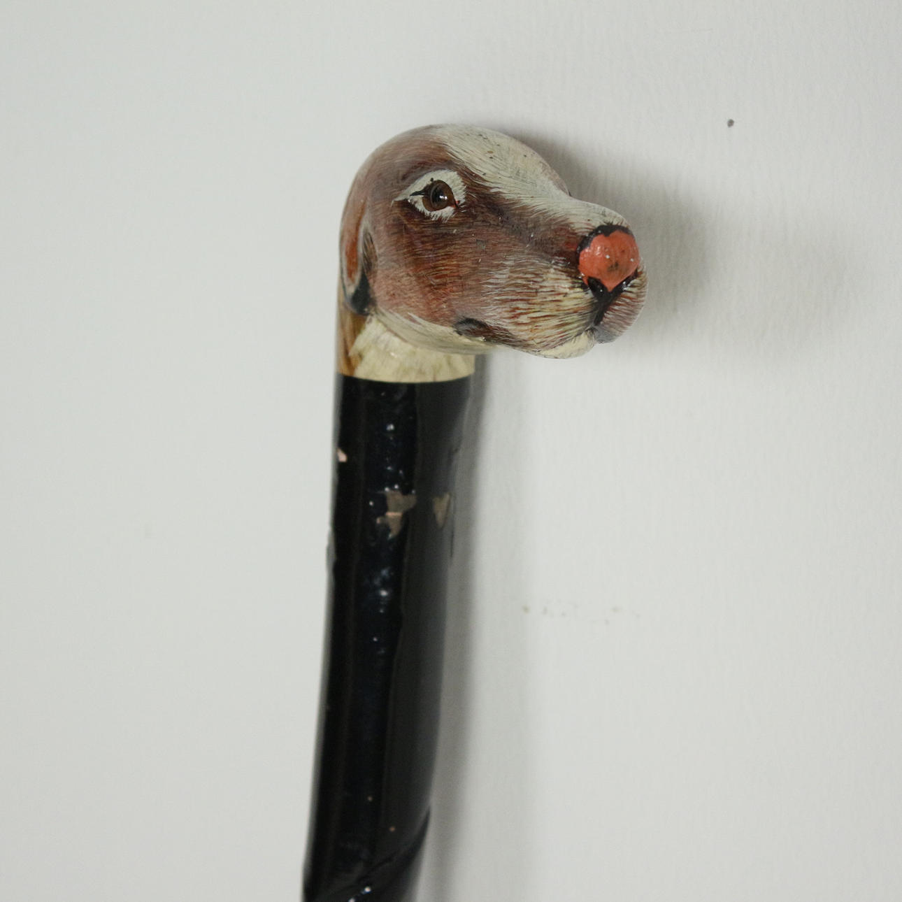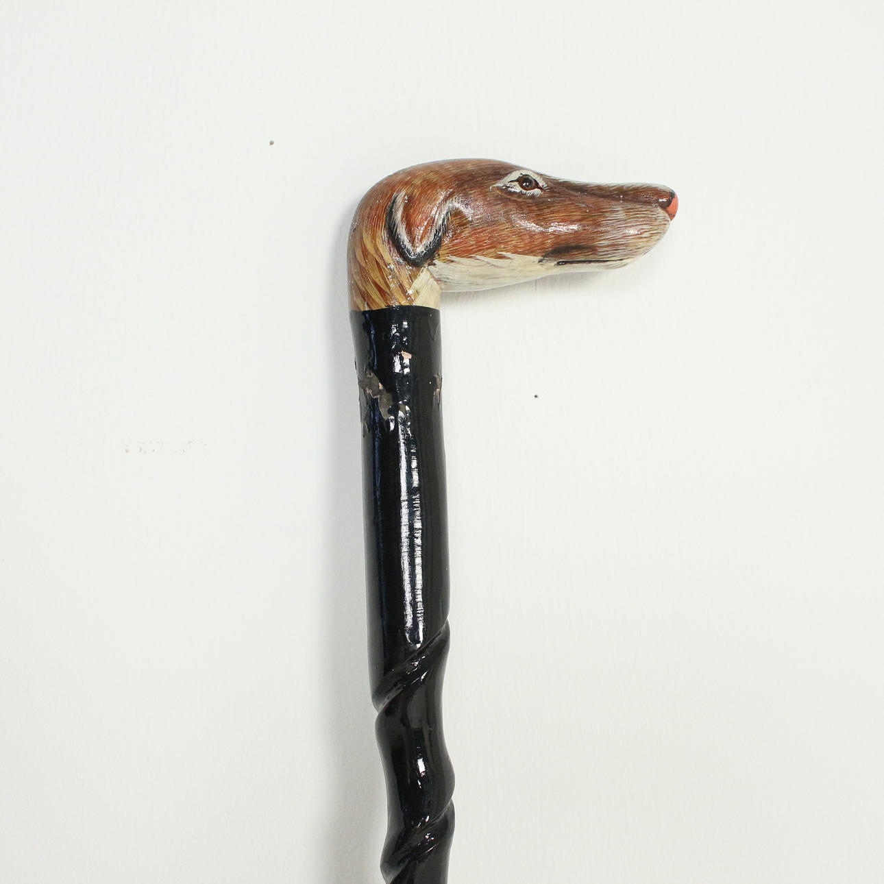 käpp ”hund”, snidat trä, Längd ca..: 92 cm.