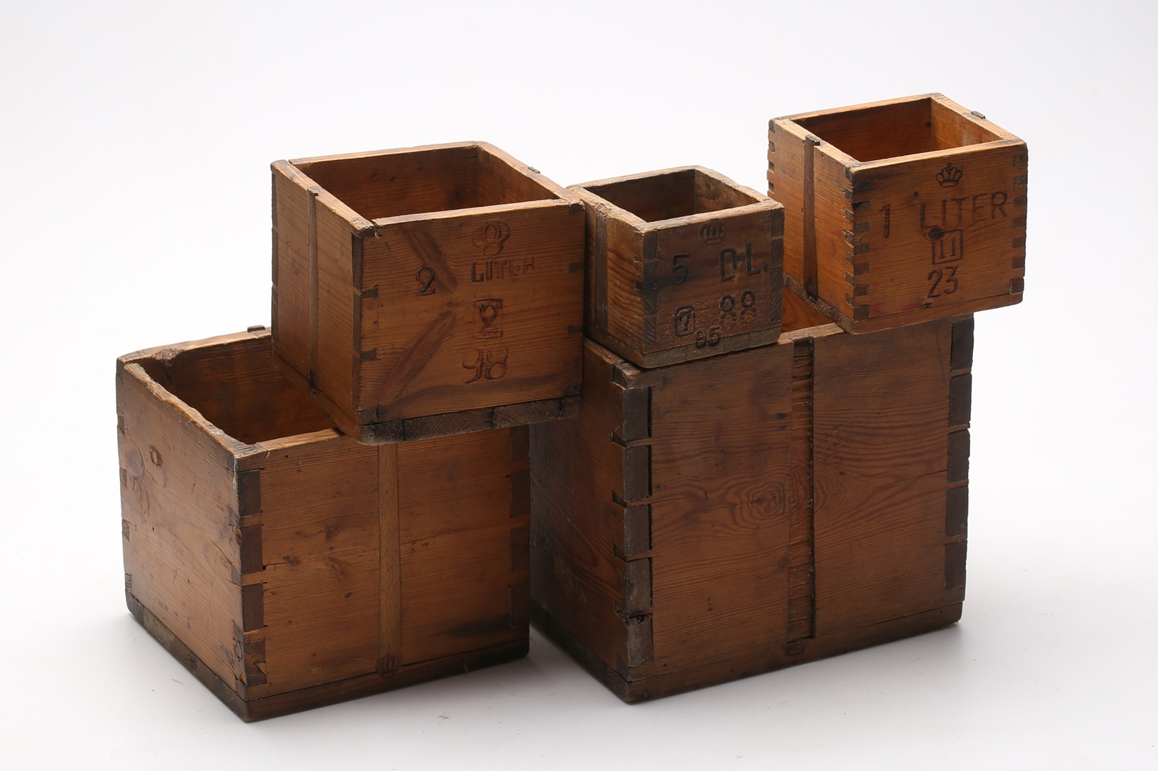 2196414. KRÖNTA MÅTT, 5 st, 5 dl-10 liter.
