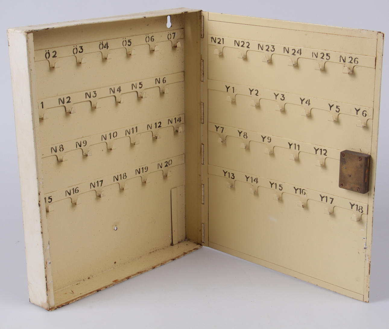 Vägghängt nyckelskåp Längd 33, bredd 5, höjd 40 cm.