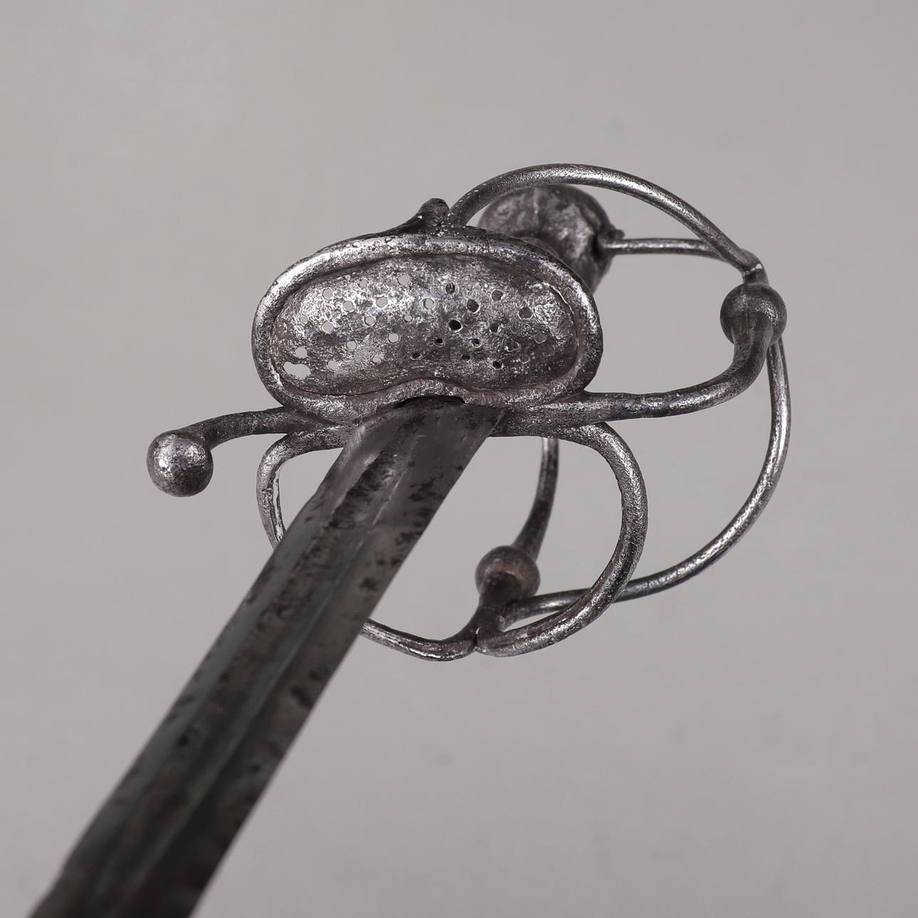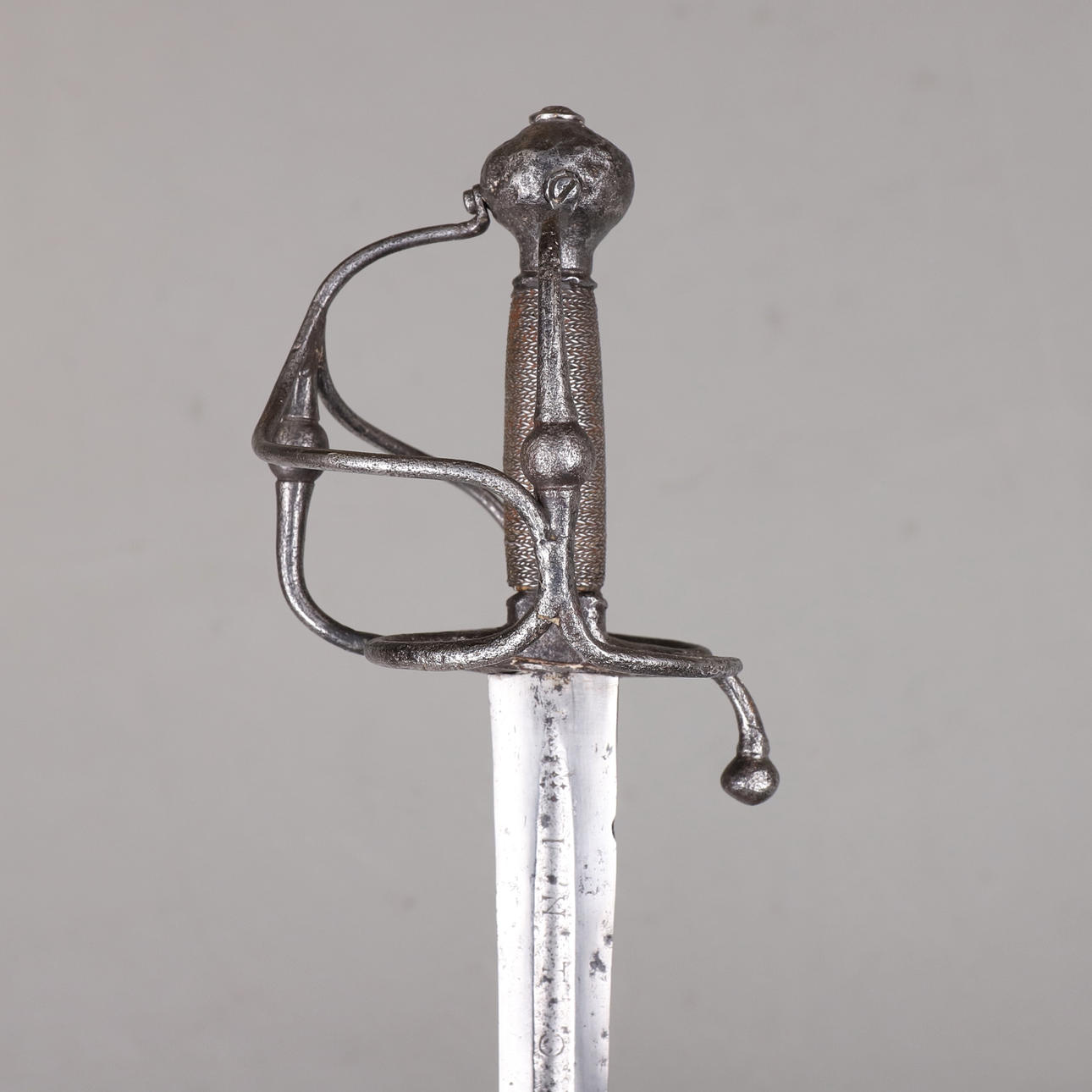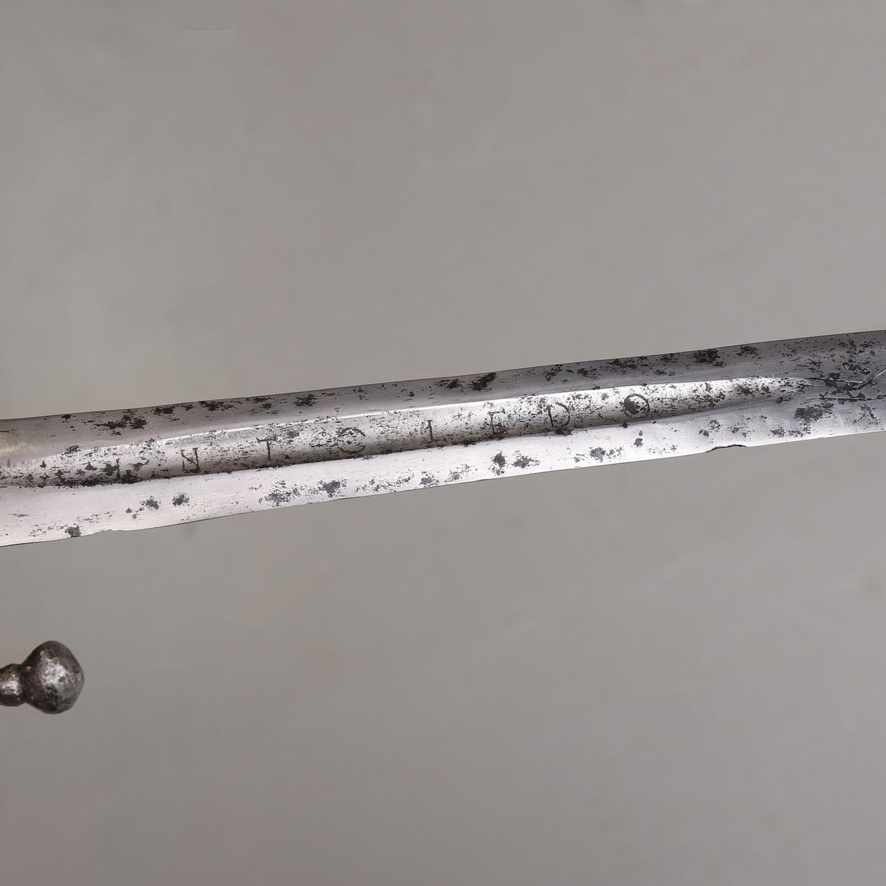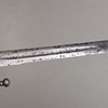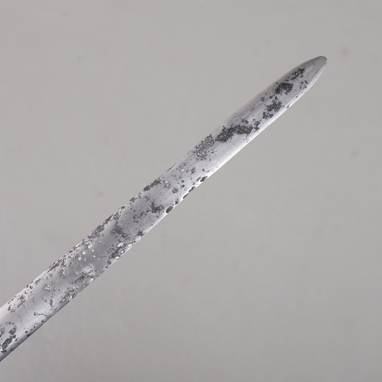 Åldersrelaterat slitage, korrosion, något böjd och avkortad klinga.