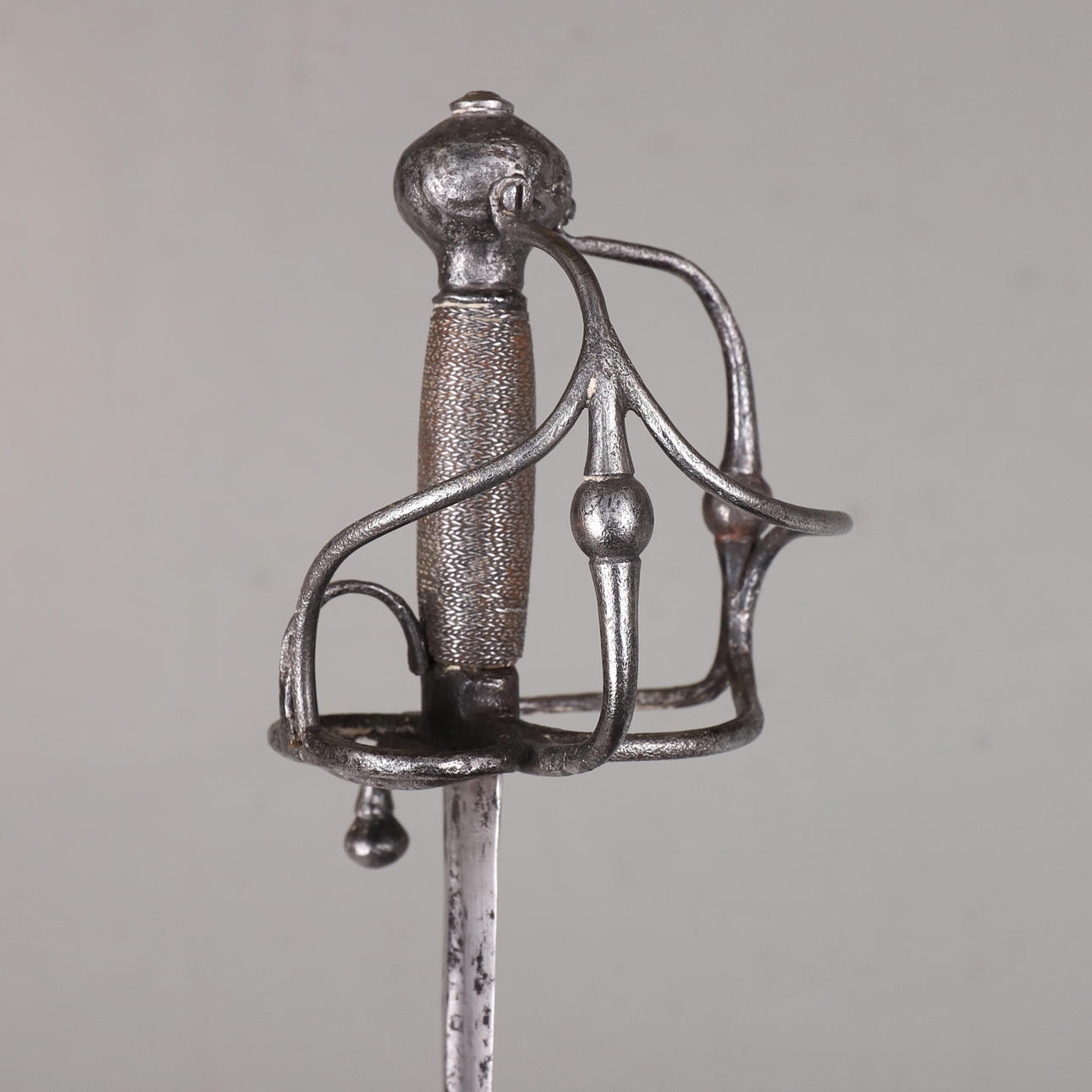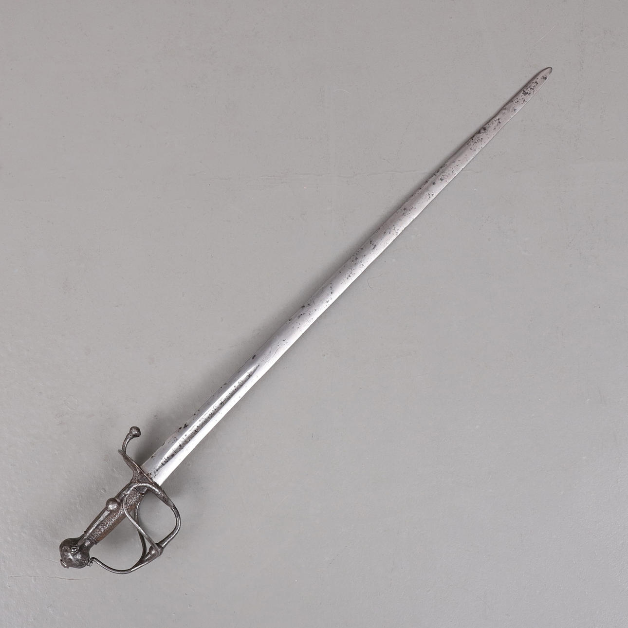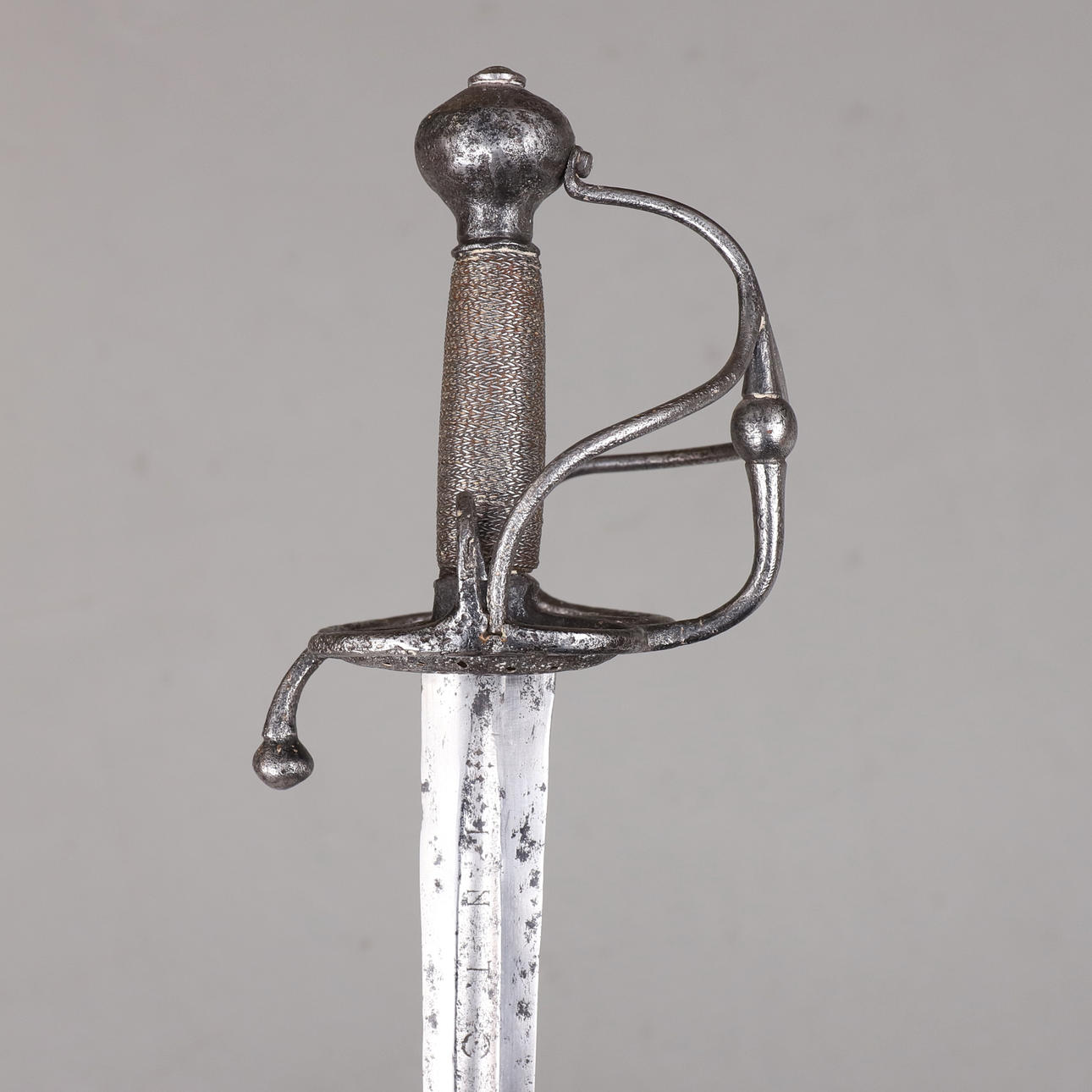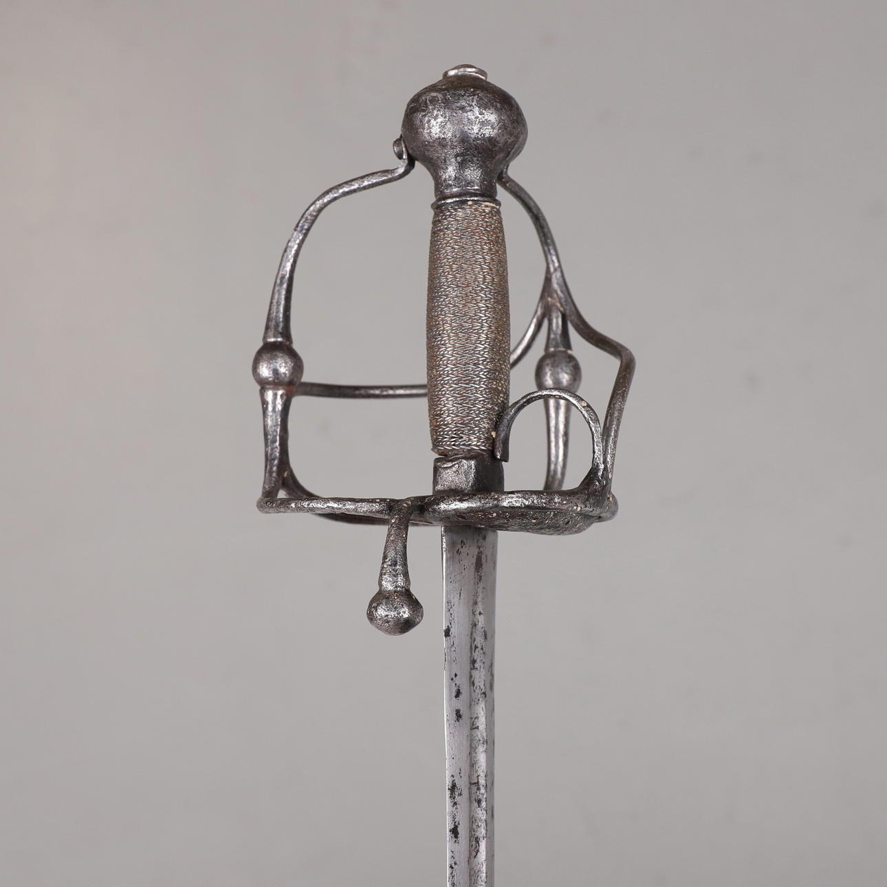 Åldersrelaterat slitage, korrosion, något böjd och avkortad klinga.