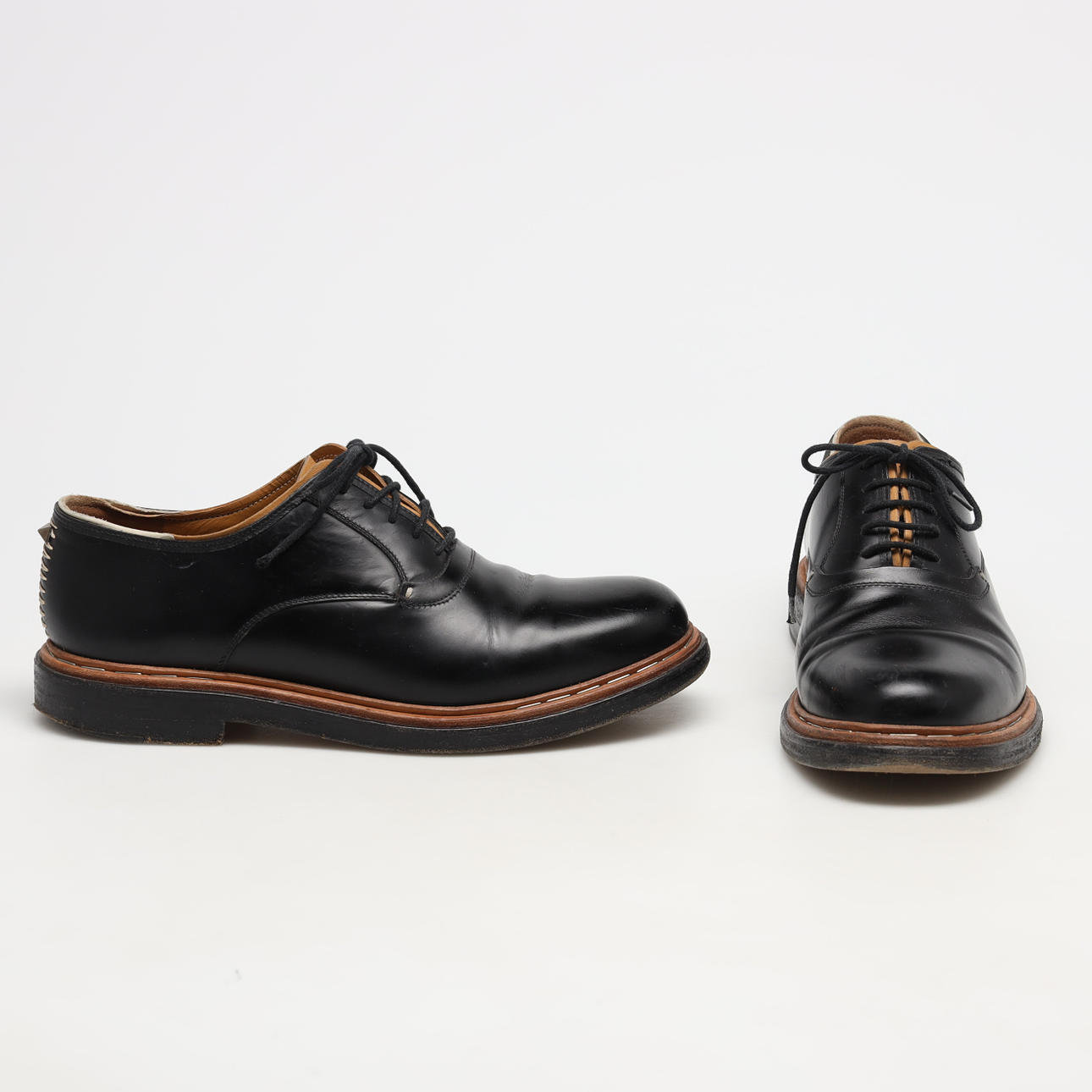 snörrskor i svart läder med lädersula, skoblock medföljer.