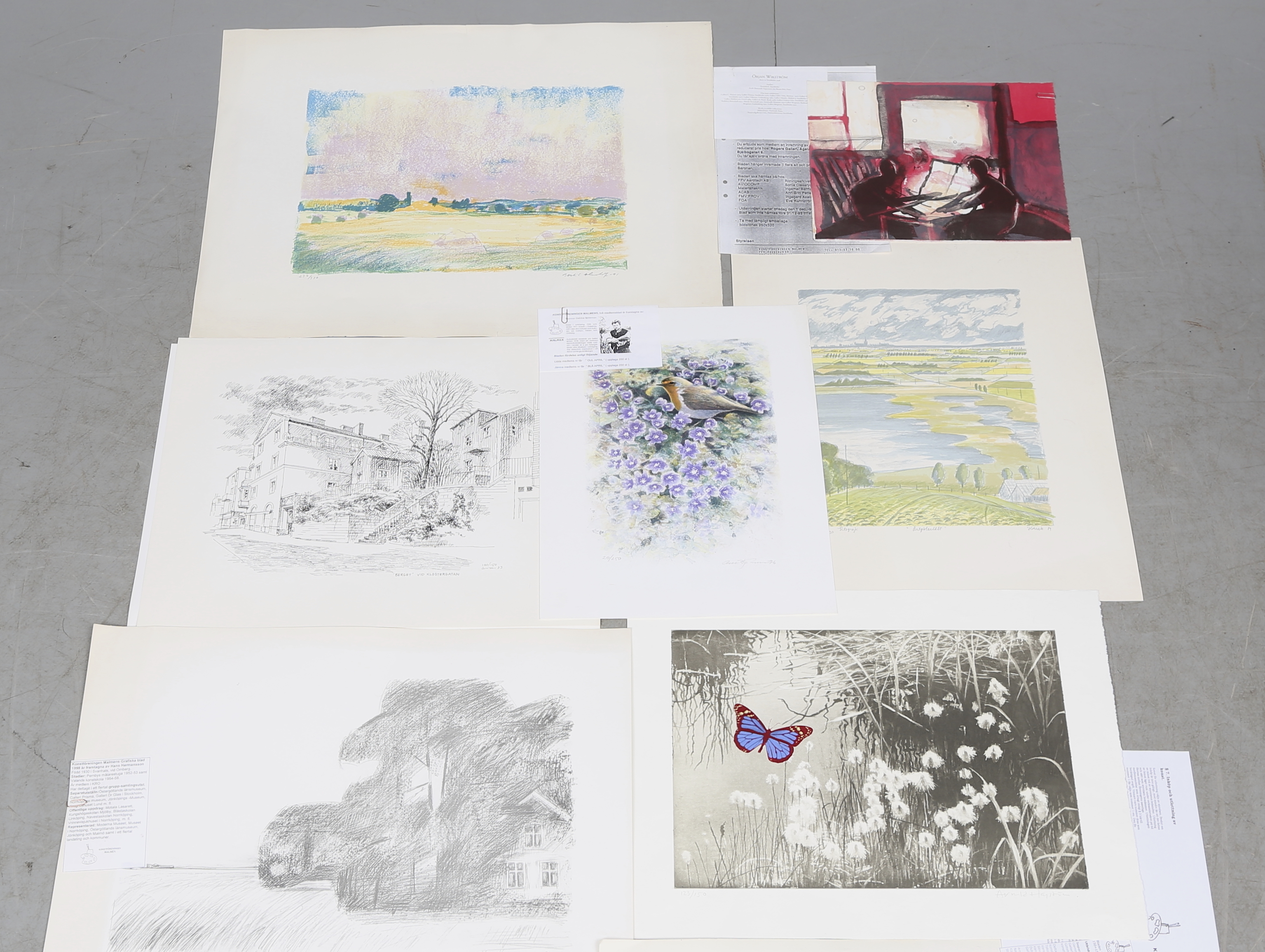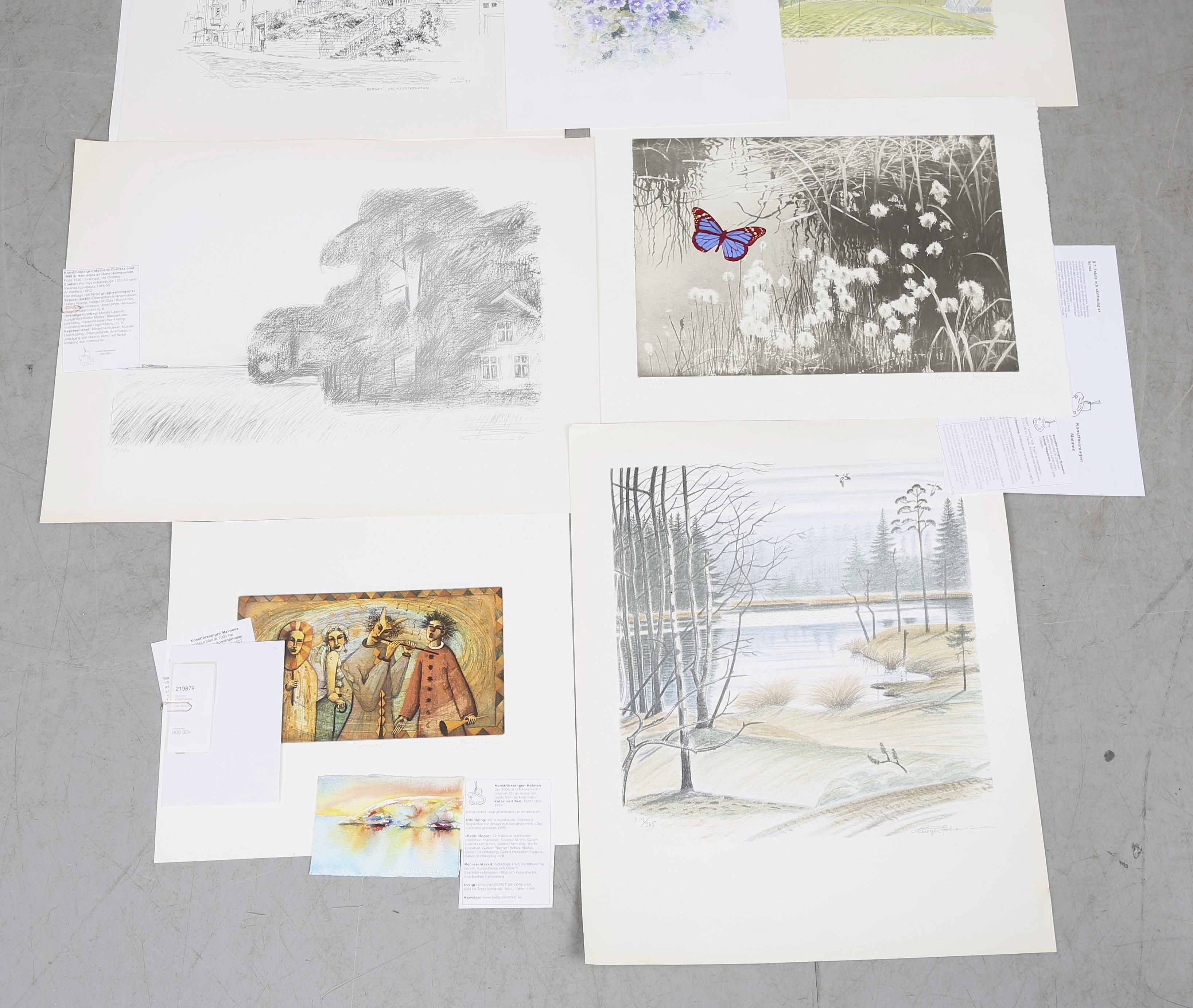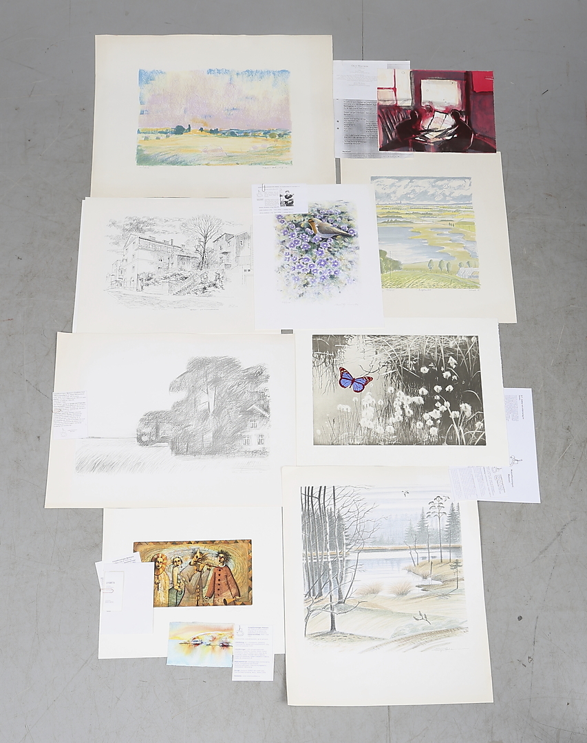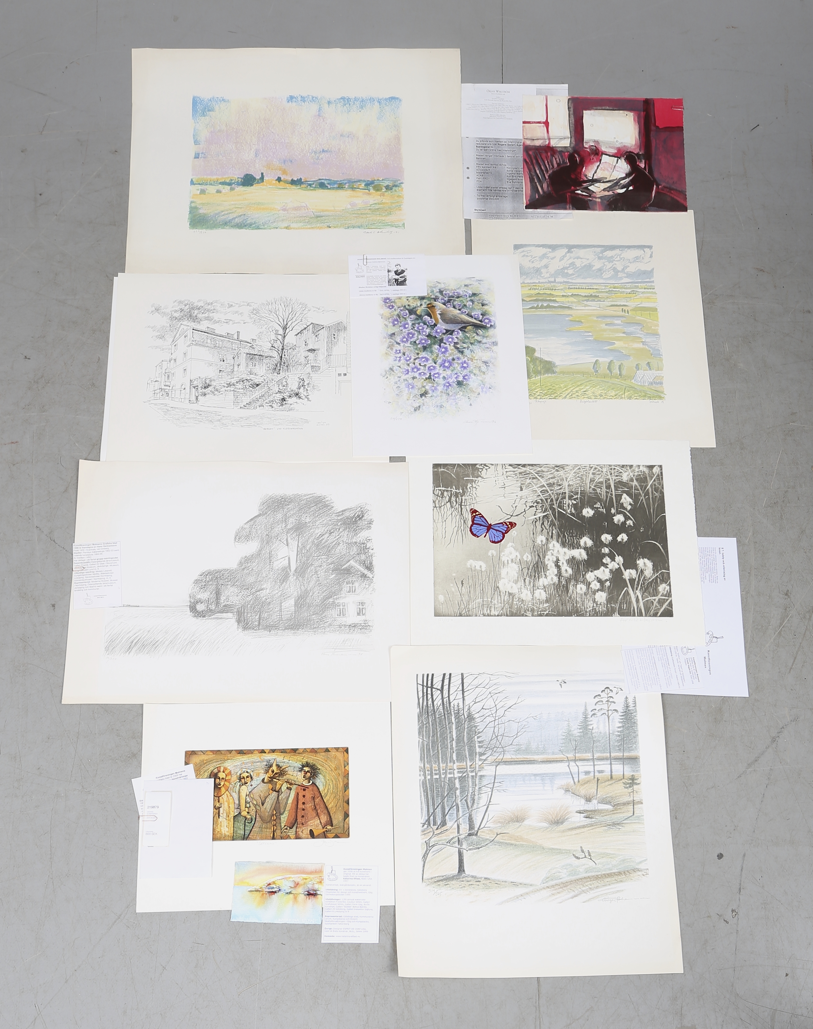 219879. DIVERSE KONSTNÄRER. Grafik, 10 st samt akvarell.