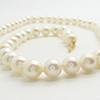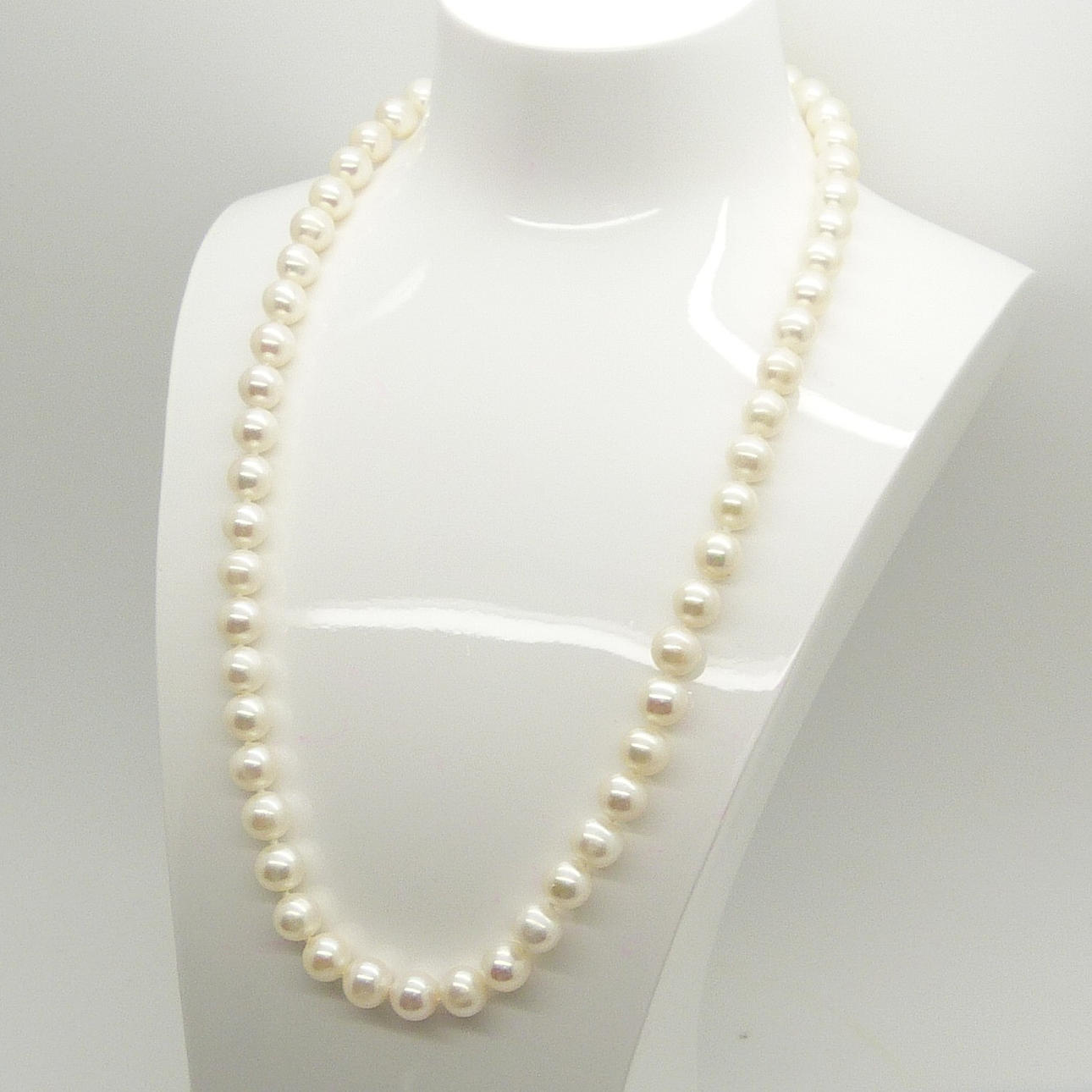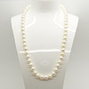 Det finns 55 vita naturliga odlade pärlor uppträdda till detta halsband. De är runda men har något organiska former.