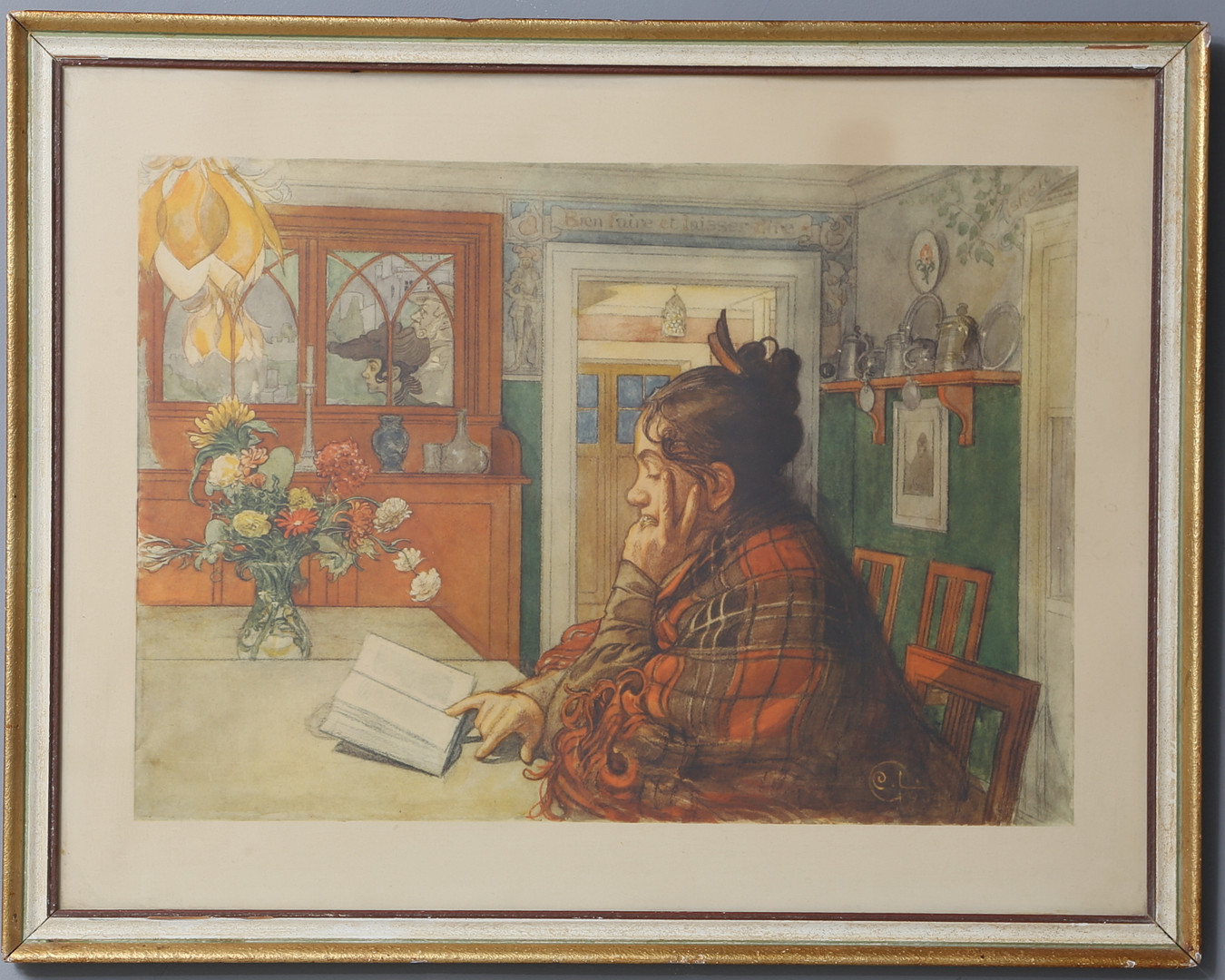 2201112. CARL LARSSON. tavla, äldre tryck, original målad 1904.