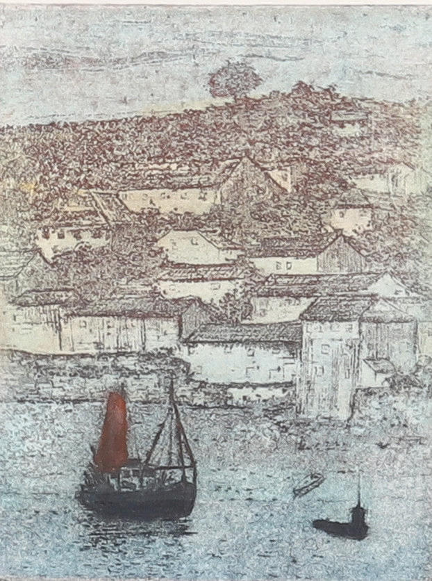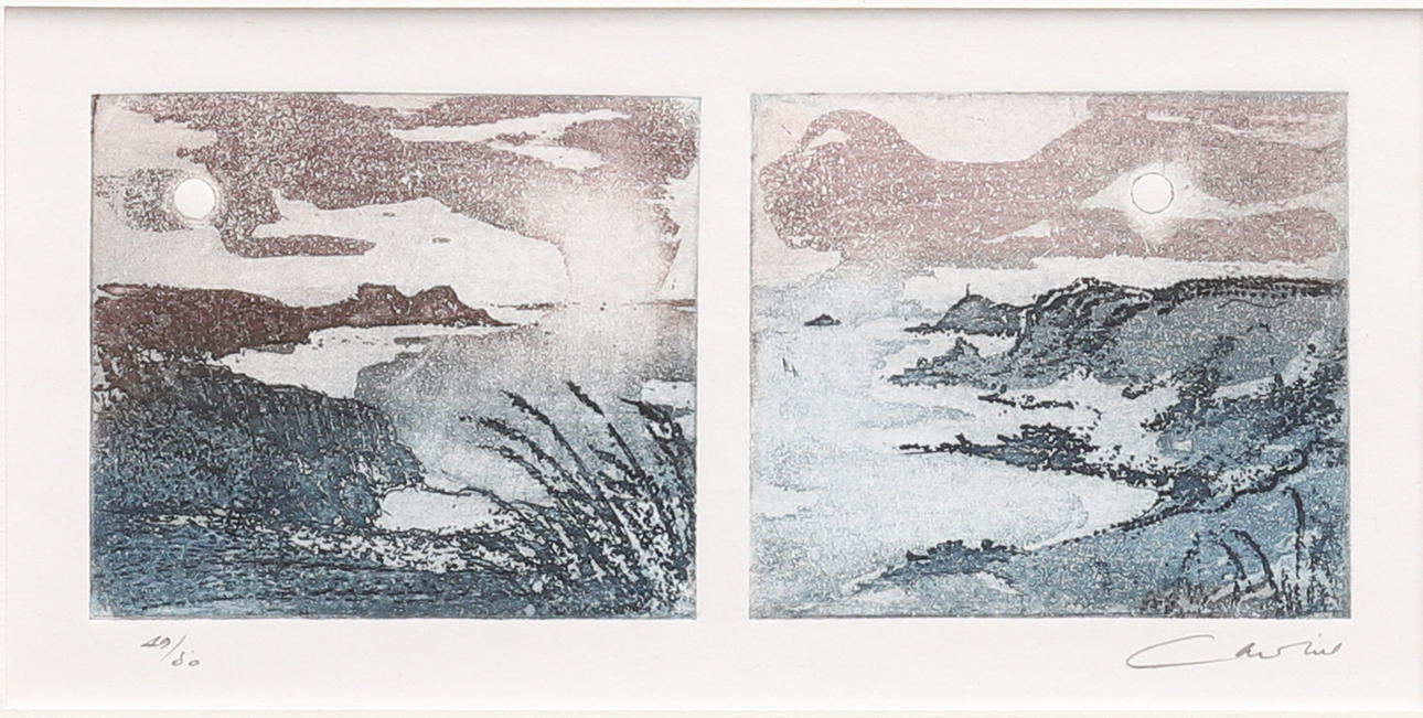 signerad, betitlad, begränsad upplaga etsning, nr. 28/50, monterad och ramad, 23cm x 26cm övergripande, och en samling om sex andra av konstnären, varierande storlekar, likformigt metallinramad (7).