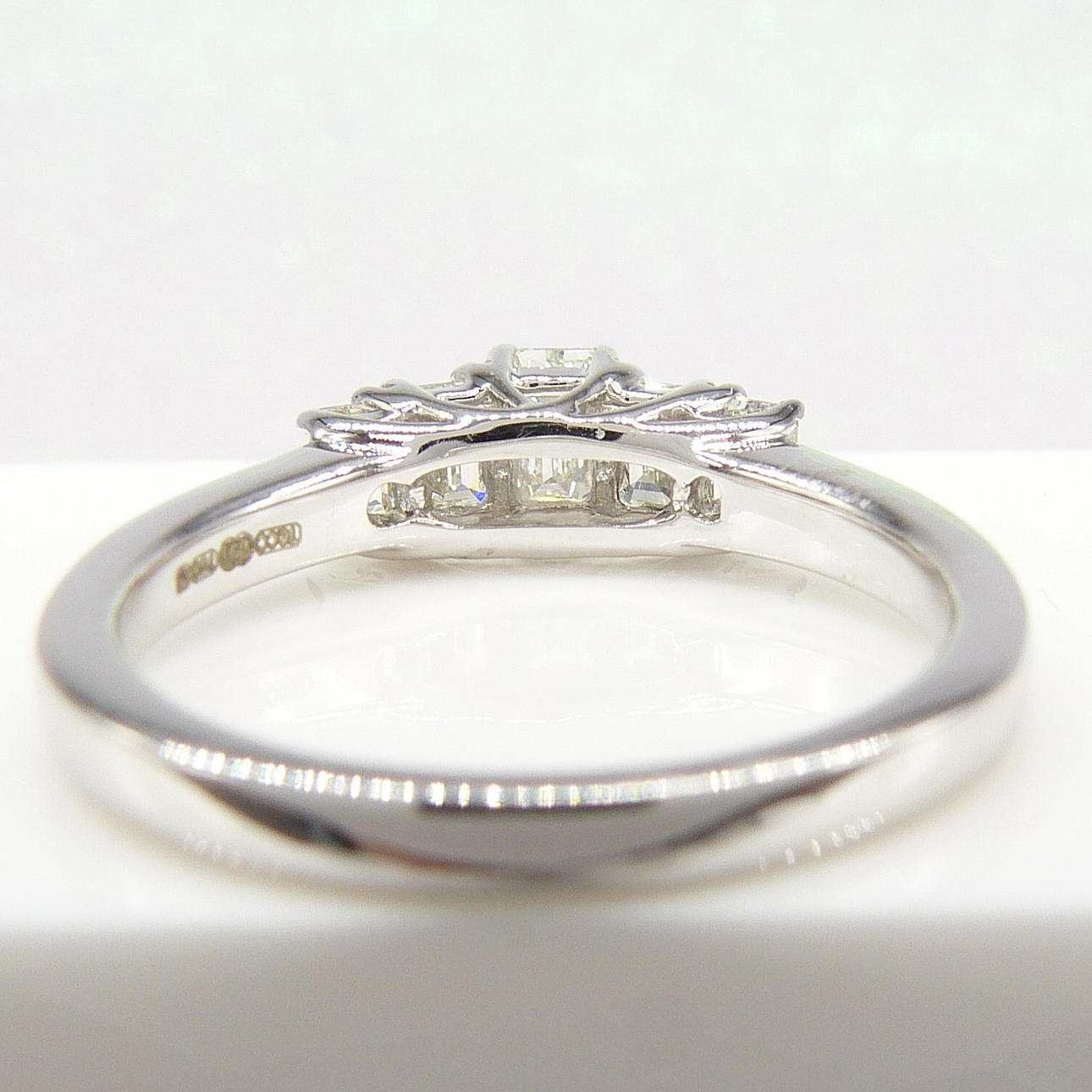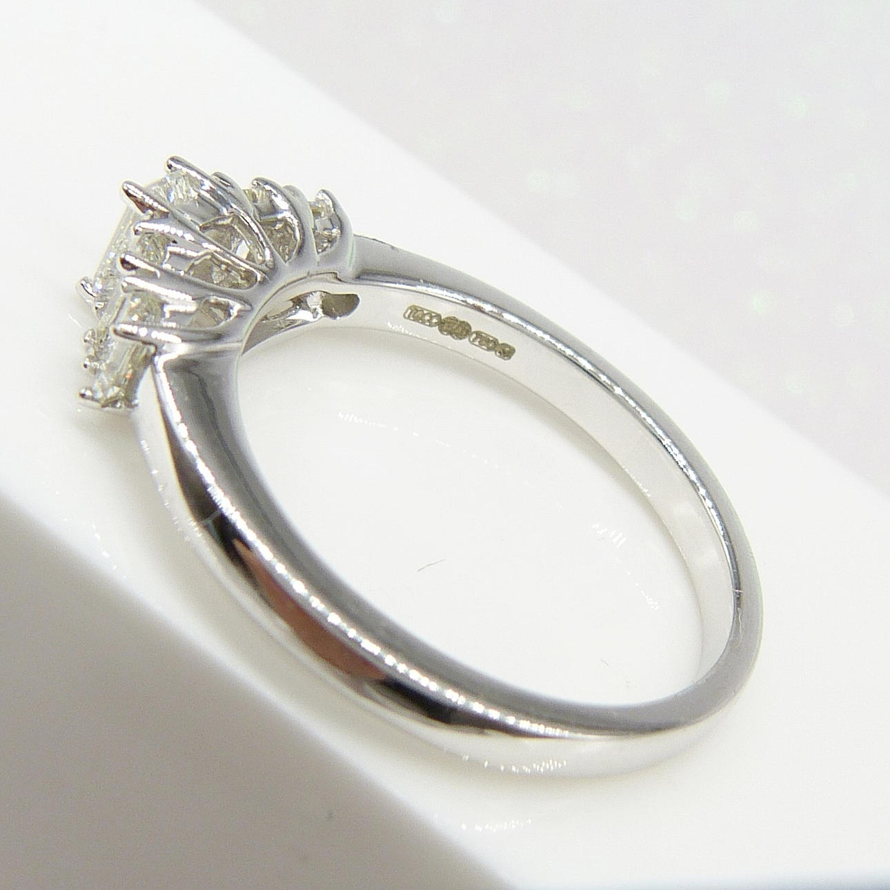 Denna ring är stämplad 18 karat vitguld.