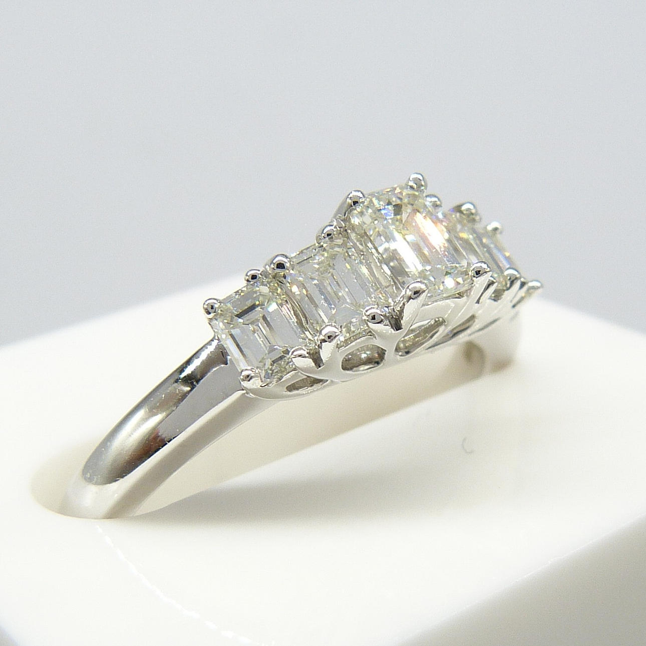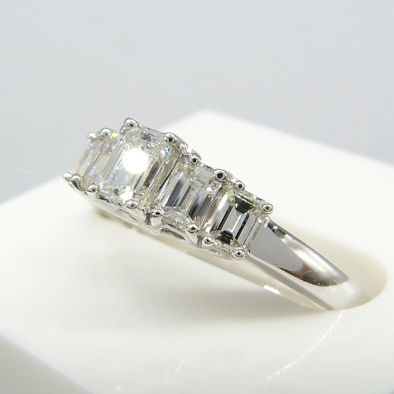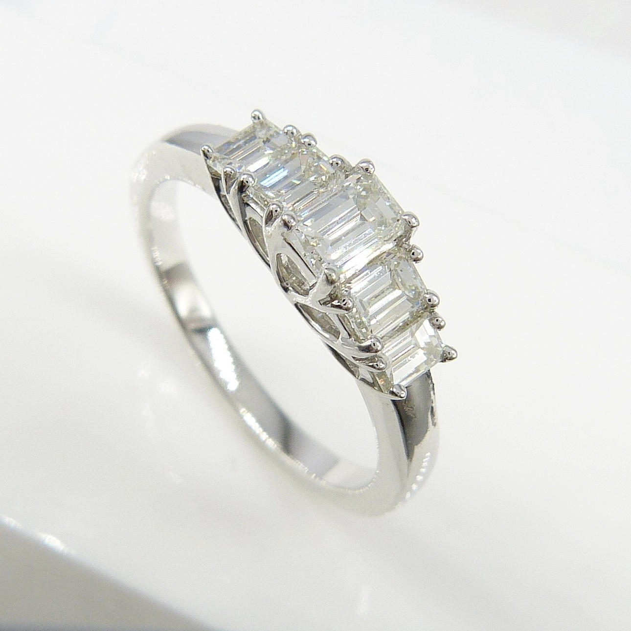 En graderad 0.77ct 5-sten baguette diamantring i 18 k vitguld.