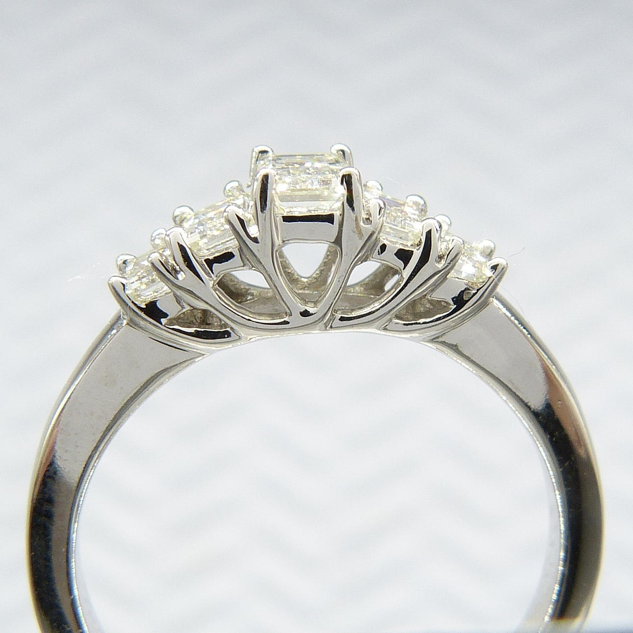 Klo-set i denna ring är 5 naturliga baguetteslipade diamanter totalt 0.77cts.