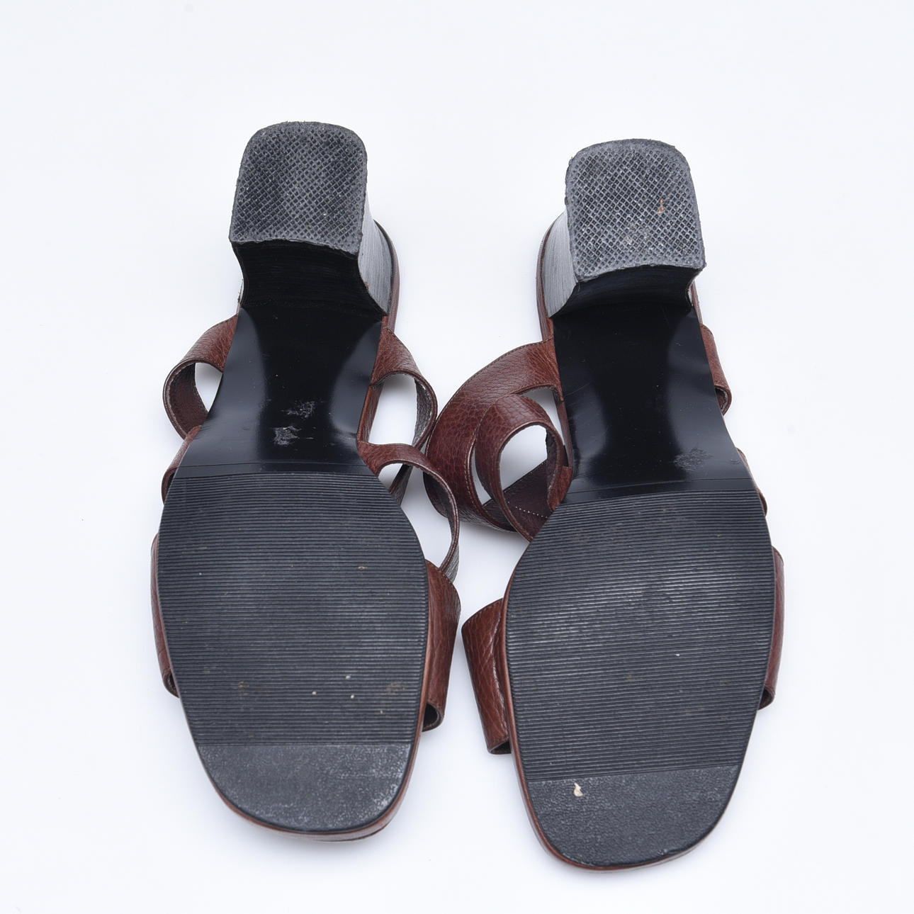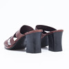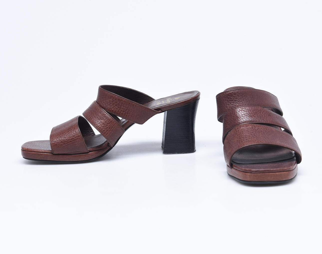 Slip- ins med klack med breda remmar i brunt skinn. Storl 7,5. Klcak höjd ca 7 cm.