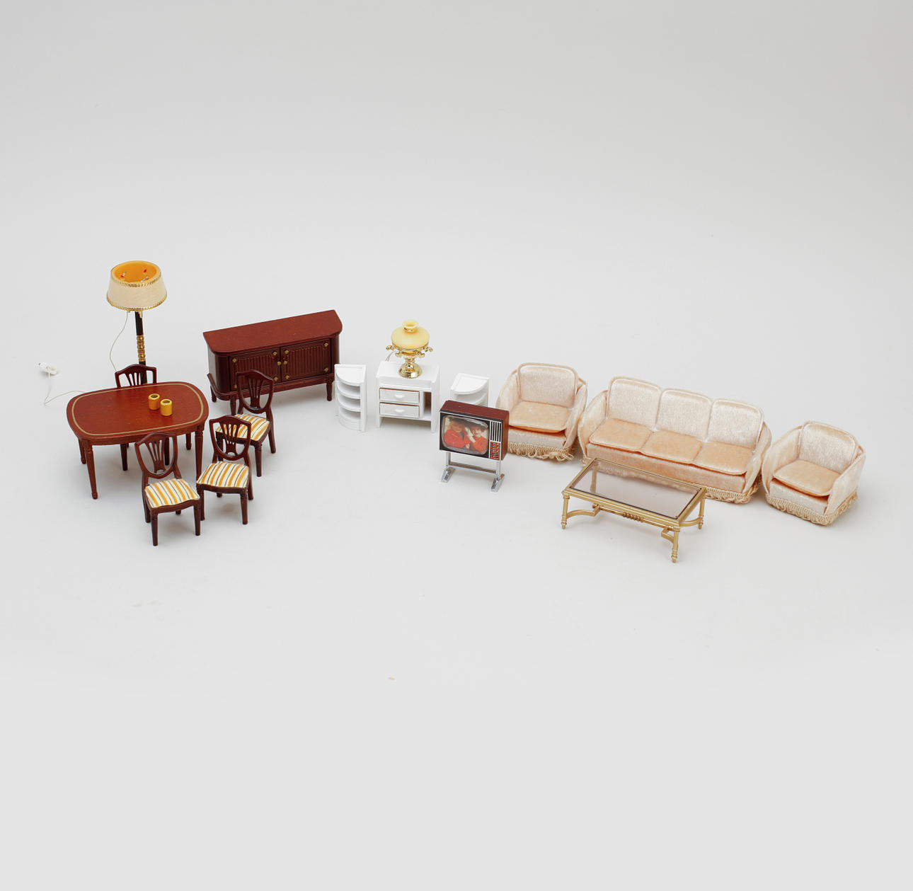 DOCKSKÅPSMÖBLER, 23 delar, bland annat Lundby.