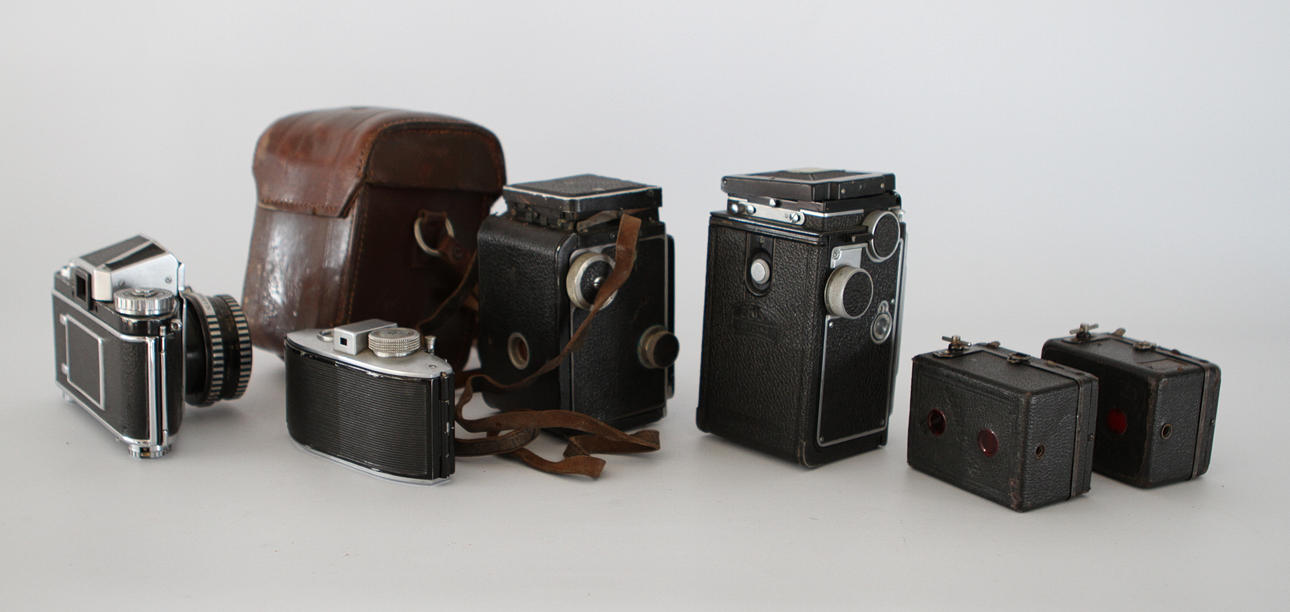 Rolleiflex, Ikoflex, Exakta, Agfa, samt 3 delar tillbehör.