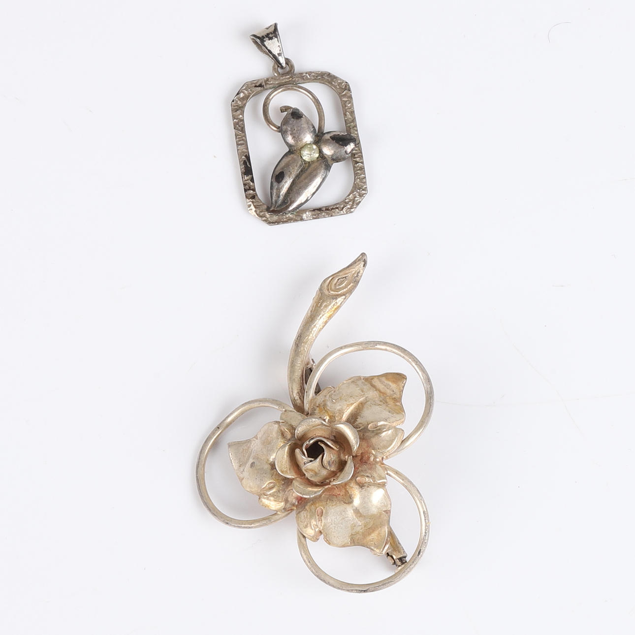 2 st broscher i silver, bredd 4,5 cm