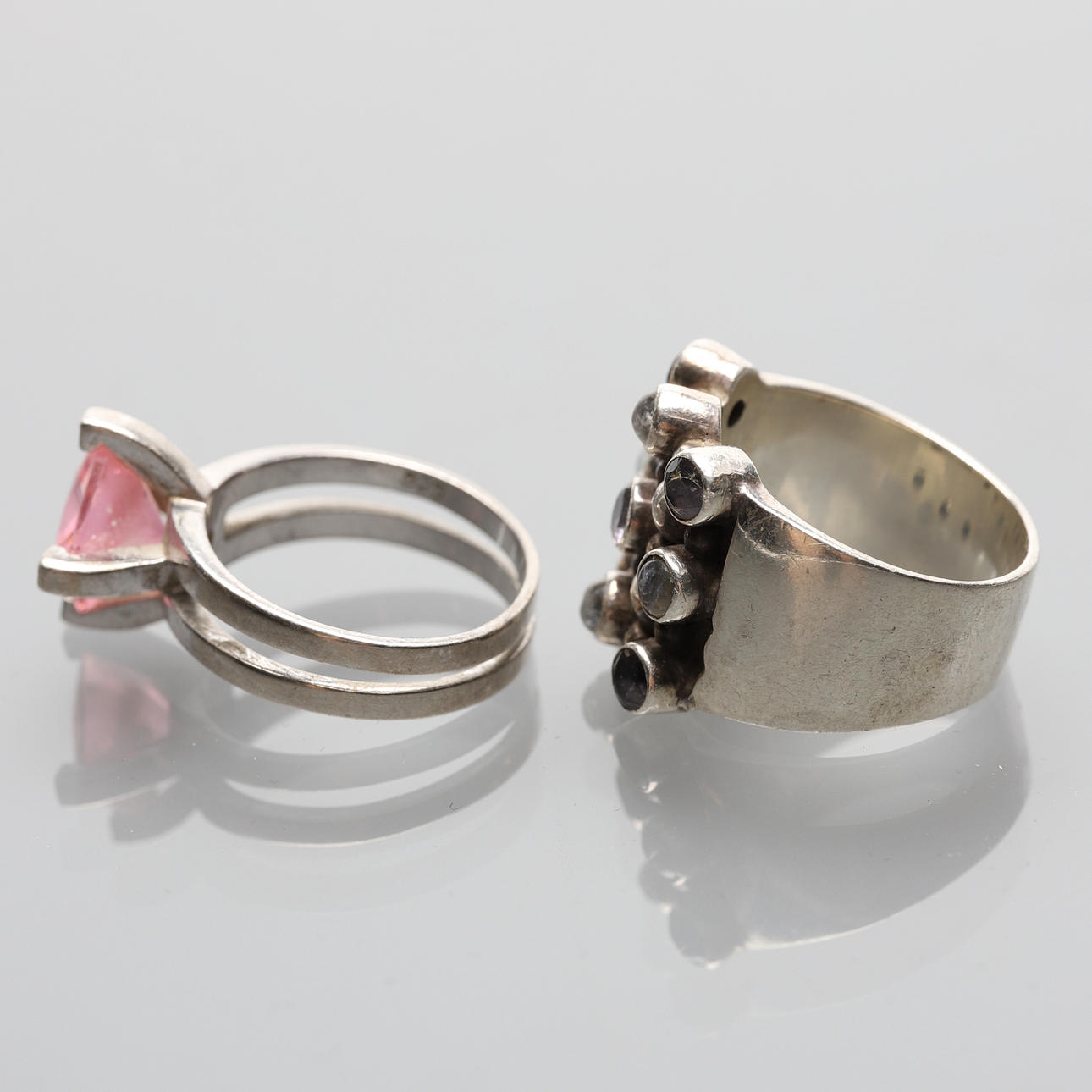 2208475. RINGAR, 2 st, silver, bl.a Guldfynd, stora storlekar.