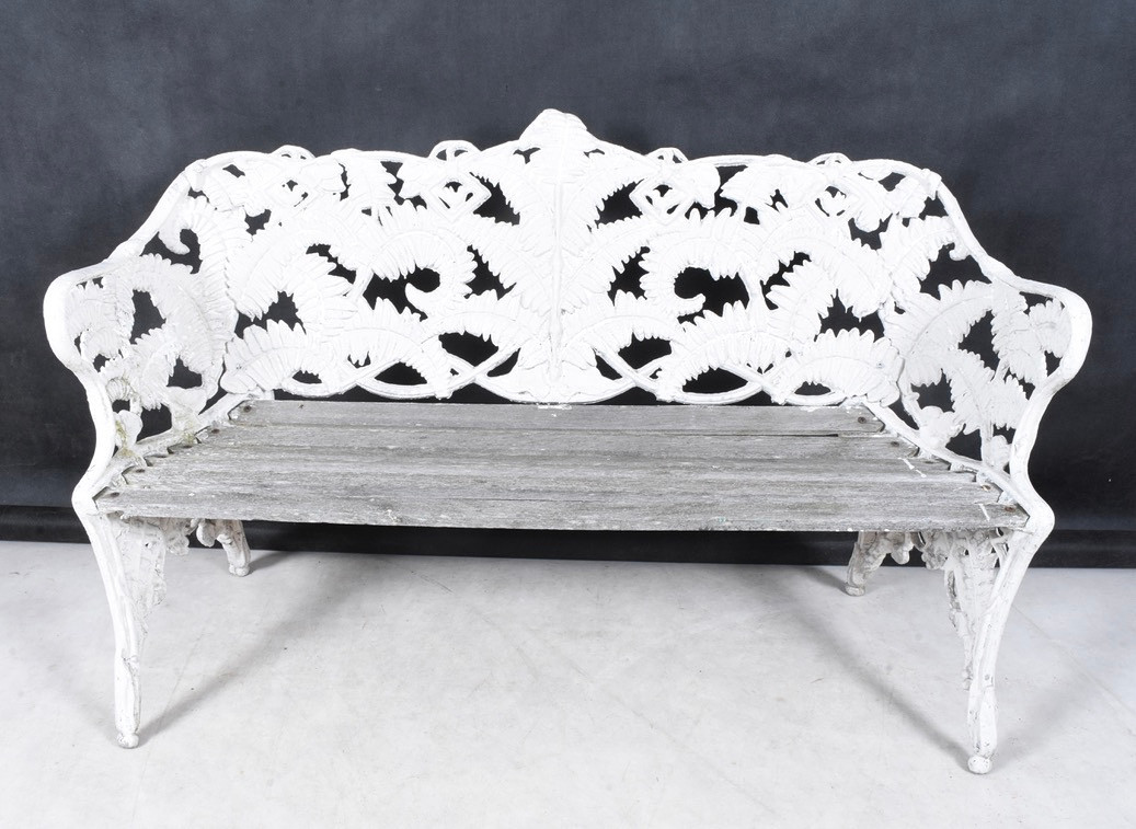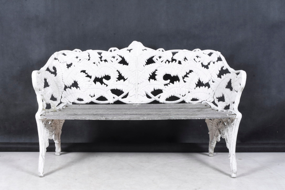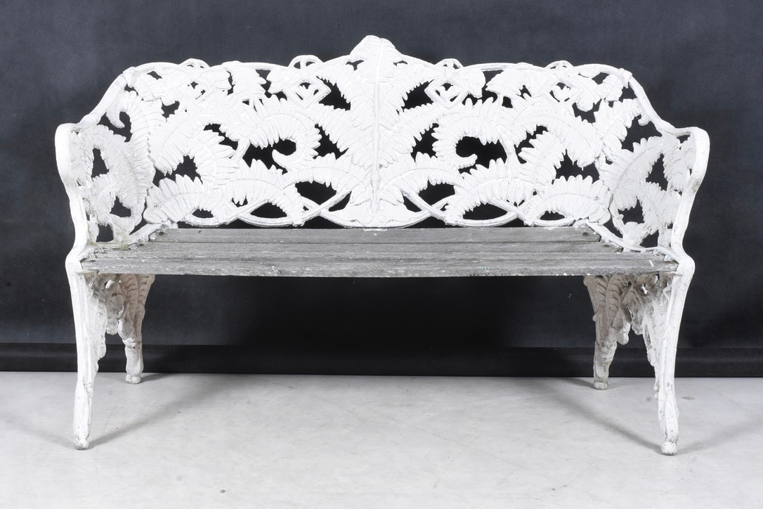 2214531. TRÄDGÅRDSSOFFA, så kallad ormbunkssoffa, aluminium, 1900-tal.