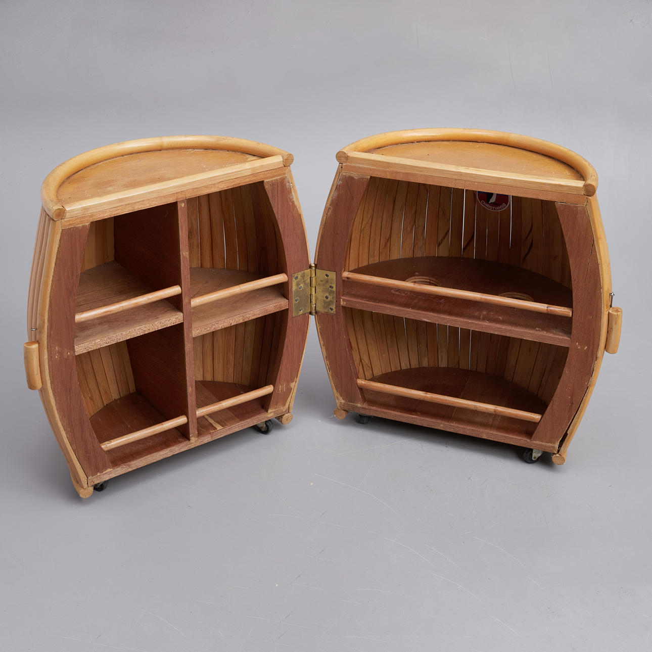 BARSKÅP, bambu, i form av tunna, 1900-talets mitt.