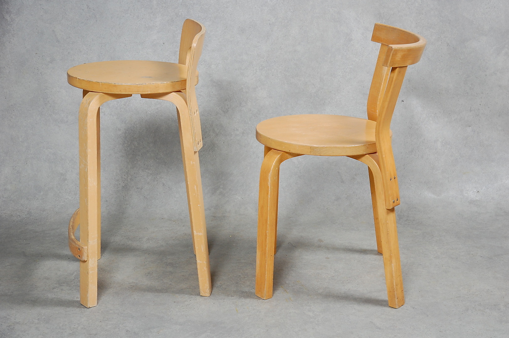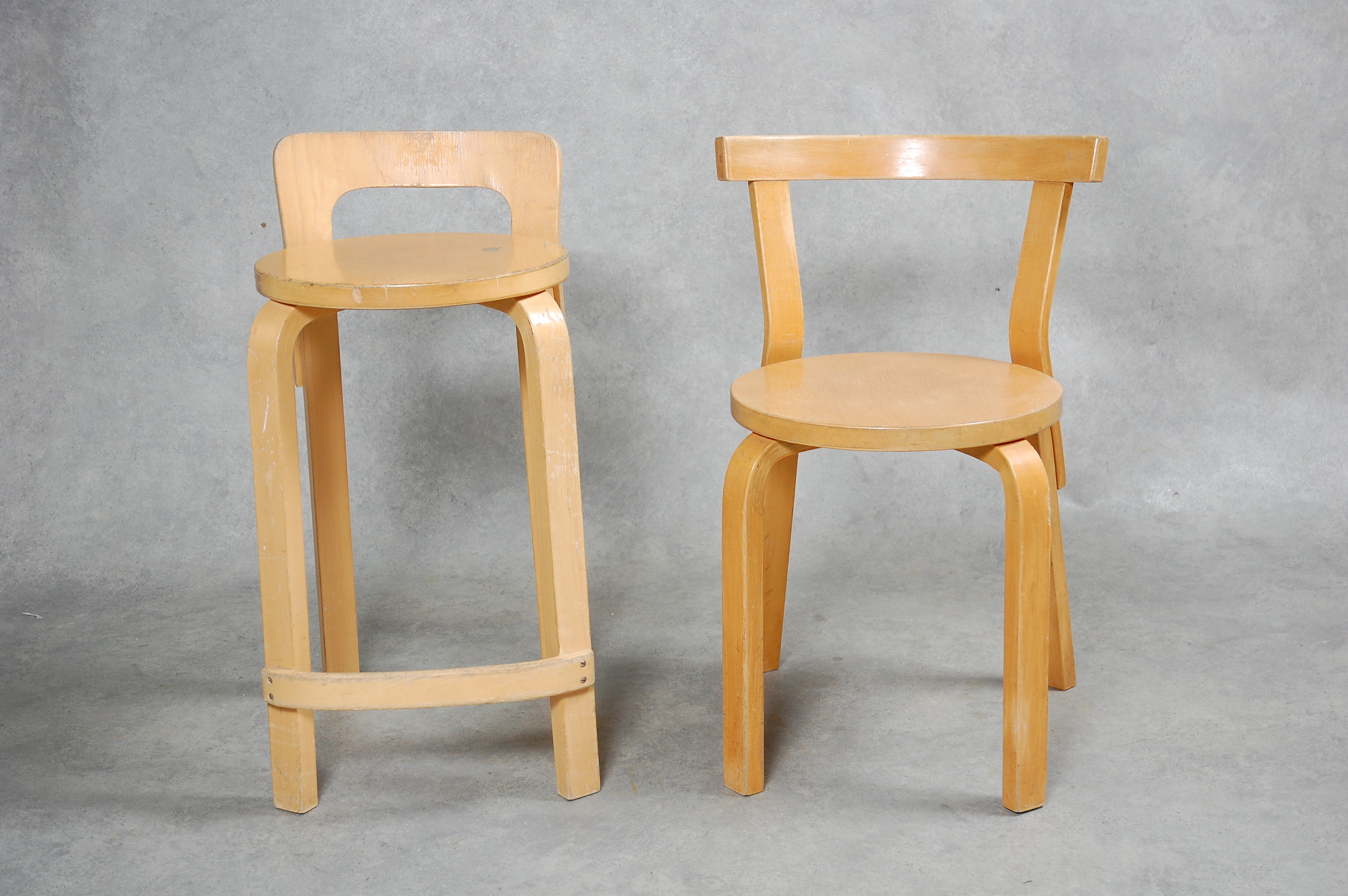 222025. ALVAR AALTO. stolar, 2 st modell " K 65 , 68 ".
